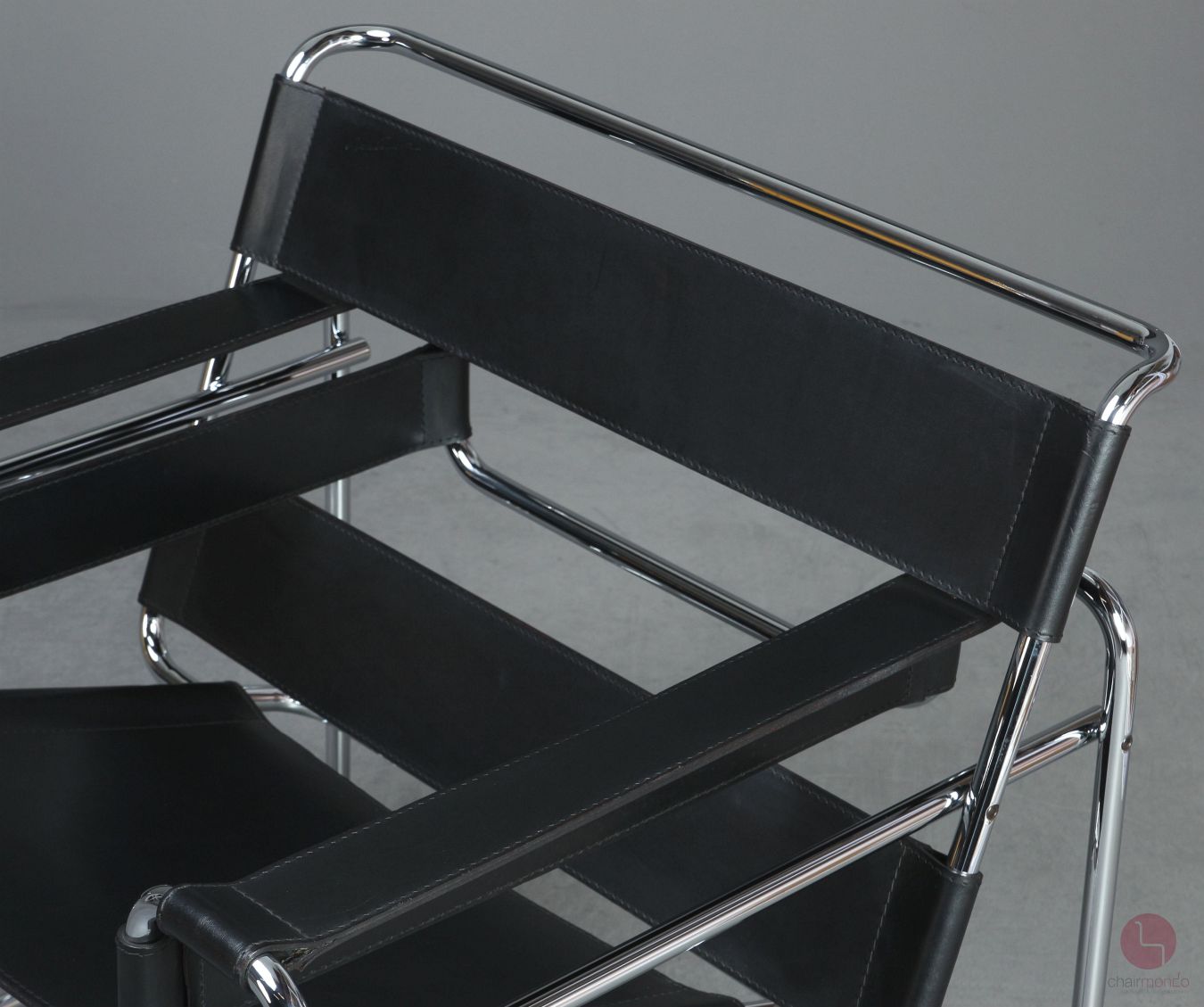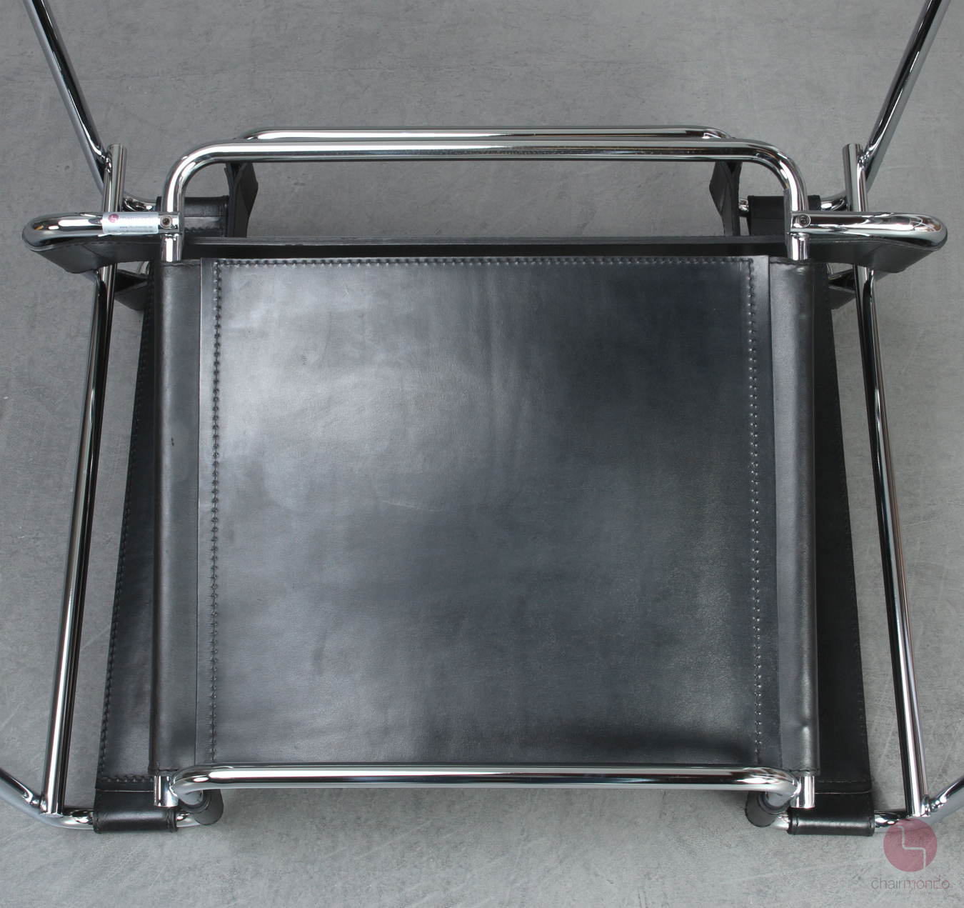 Der Wassily Chair wurde 1926 von Marcel Breuer am Bauhaus entworfen. Er steht am Beginn des modernen Möbeldesigns: Als eines der ersten Möbeldesigns, das den Werkstoff Stahl für seine zukunftsgewandte Konstruktion nutzt, ist das aufwendig geformte Gestell mit einer Lederbespannung kombiniert, die die Sitz- und Rückenfläche bildet. Breuers konstruktivistischer Entwurf legt seine Statik radikal offen und verbindet so in einmalig innovativer Weise Ästhetik und Funktion. Der Wassily Chair produziert von Gavina gilt unter Kennern als die beste Version. Der Rahmen besteht aus stabilem Stahlrohr und die Garnituren aus festem Kernleder Dadurch ist der Sessel besonders Robust und langlebig. Ein echtes Qualitätsprodukt welches Generationen überdauert!
