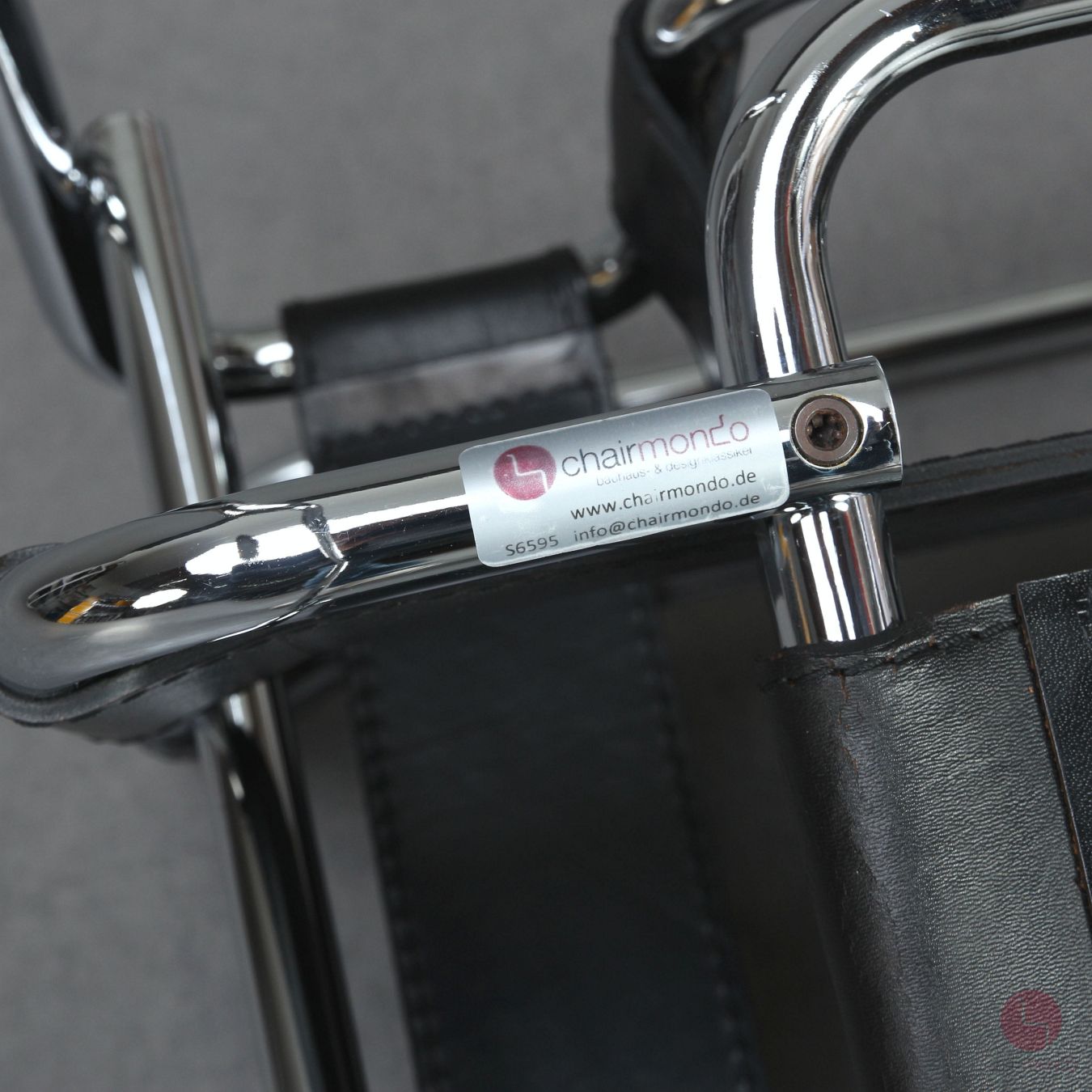 Bei uns erhalten Sie den originalen Klassiker produziert in den 1980er Jahren von Gavina in der klassischen Variante mit verchromtem Stahlrohr und schwarzem Kernleder!