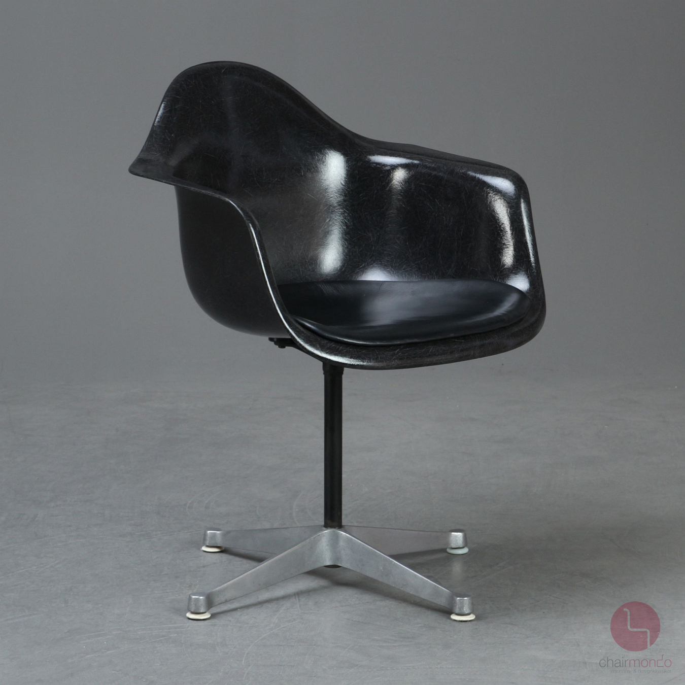 Startseite » Stühle » Vitra Designklassiker » Herman Miller Eames Armchair PAC Fiberglas Schwarz Drehgestell mit Leder Polster gebraucht