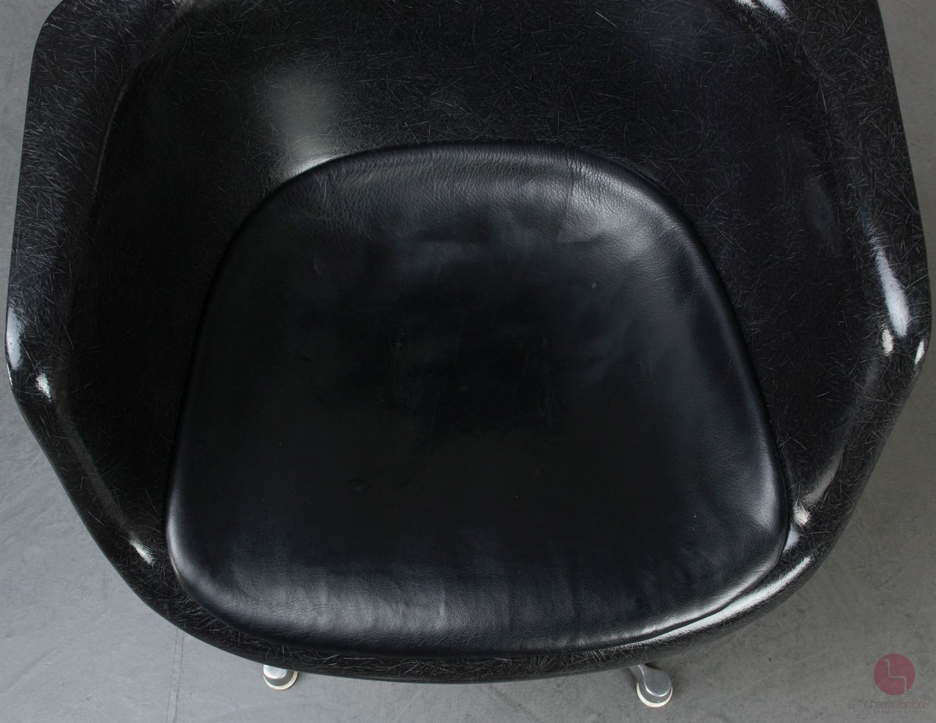 Herman Miller Eames Armchair PAC Fiberglas Schwarz Drehgestell mit Leder Polster gebraucht