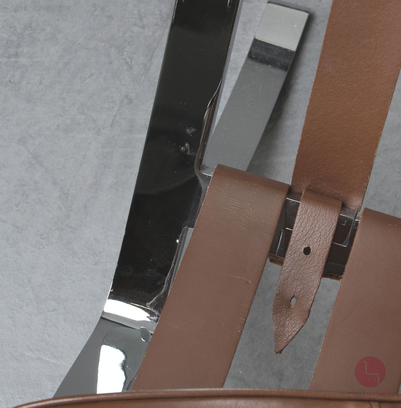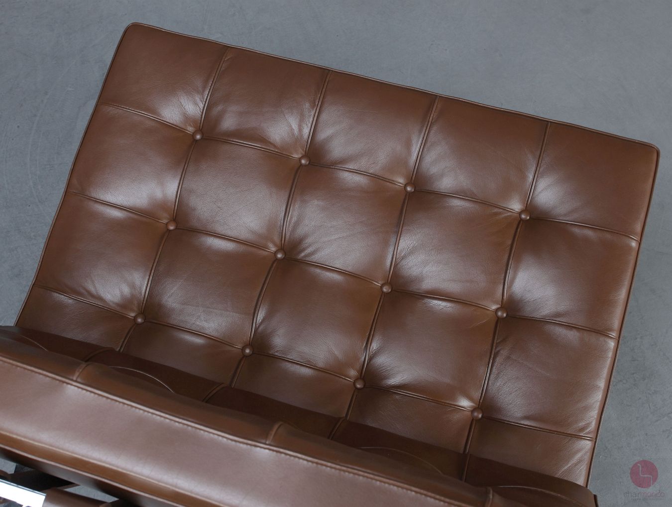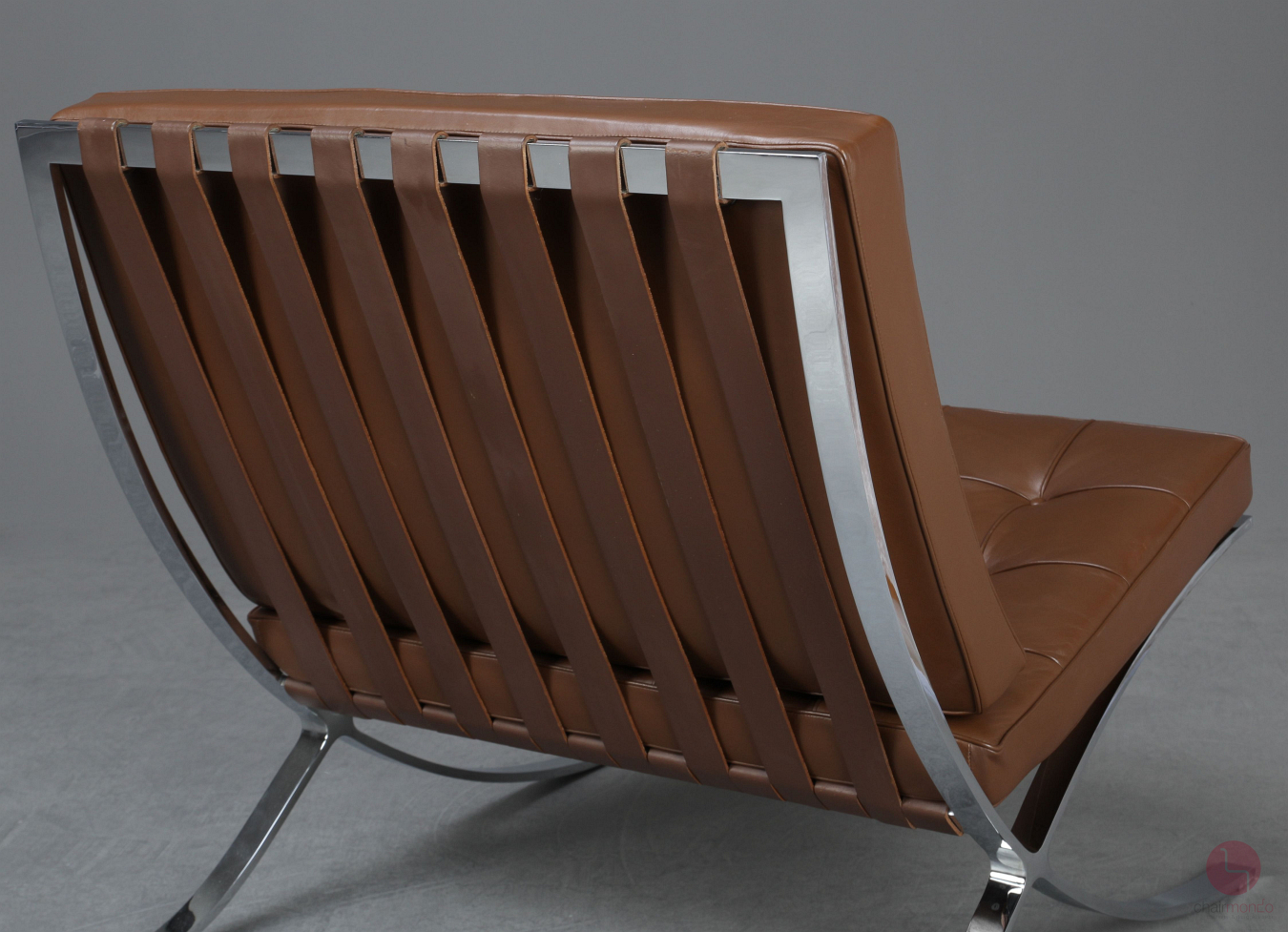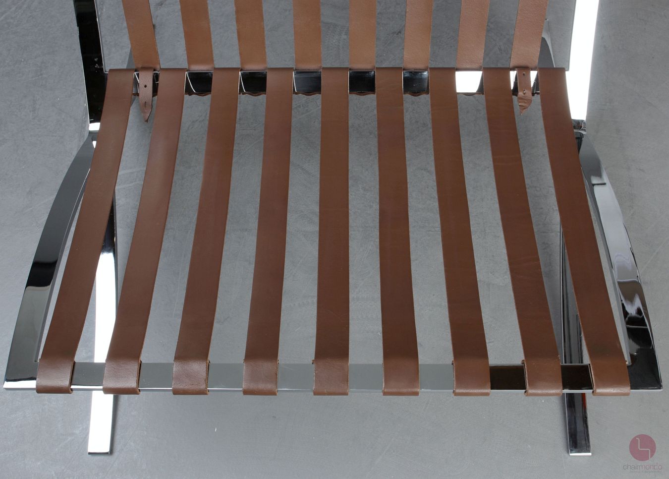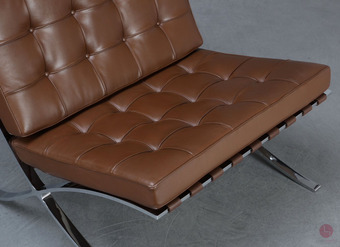 Der Barcelona Sessel ist die ultimative Vermählung von modernem Design und außergewöhnlichem Handwerk und besticht mit mehreren beeindruckenden material- und verarbeitungsqualitativen Details. Der Rahmen besteht aus hochglänzend verchromtem Flachfederstahl, der vonHand spiegelnd poliert wurde. Der Sessel hat 17 eingefärbte Kernlederriemen. Die Rindkernlederriemen sind mit Aluminium-Nieten fixiert. Die Polsterung des Barcelona Sessel besteht aus 40 individuellen Lederrechtecken, die von Hand geschnitten und ebenfalls von Hand mit Kedern aus einer einzigen Haut genäht wurden.