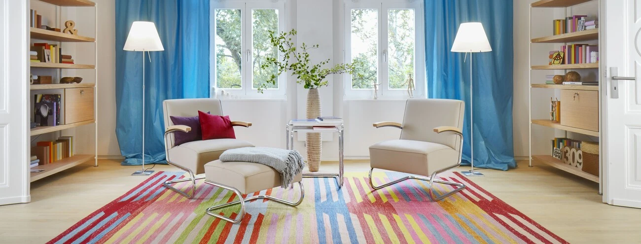 Ein echtes Highlight ist der S 35 Freischwinger-Sessel, entworfen von Marcel Breuer. Als Weiterentwicklung des klassischen Freischwingers bietet er nicht nur einen flexibel federnden Sitz, sondern auch eine großzügige, entspannte Sitzhaltung. Der integrierte Fußhocker ergänzt das Design funktional und macht ihn zu einem modernen Klassiker mit außergewöhnlichem Komfort – perfekt für Leseecke, Lounge oder Wohnzimmer.