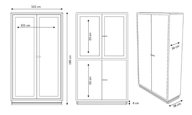 Die oberen Glastüren ermöglichen eine ruhige, übersichtliche Präsentation, während der untere, geschlossene Bereich zusätzlichen Stauraum bietet und das Gesamtbild optisch erdet. Die weich gerundeten Ecken verleihen der Vitrine eine zurückhaltende Eleganz und unterstreichen die klare Linie des Entwurfs.