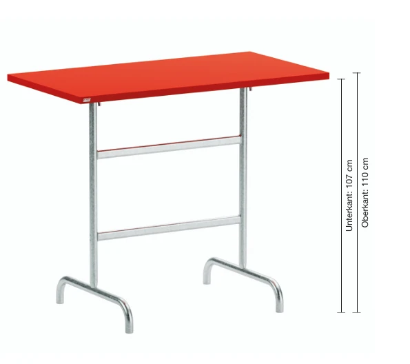 Höhe Untekante Tischplatte: 107 cmHöhe Oberkante Tischplatte: 110 cm