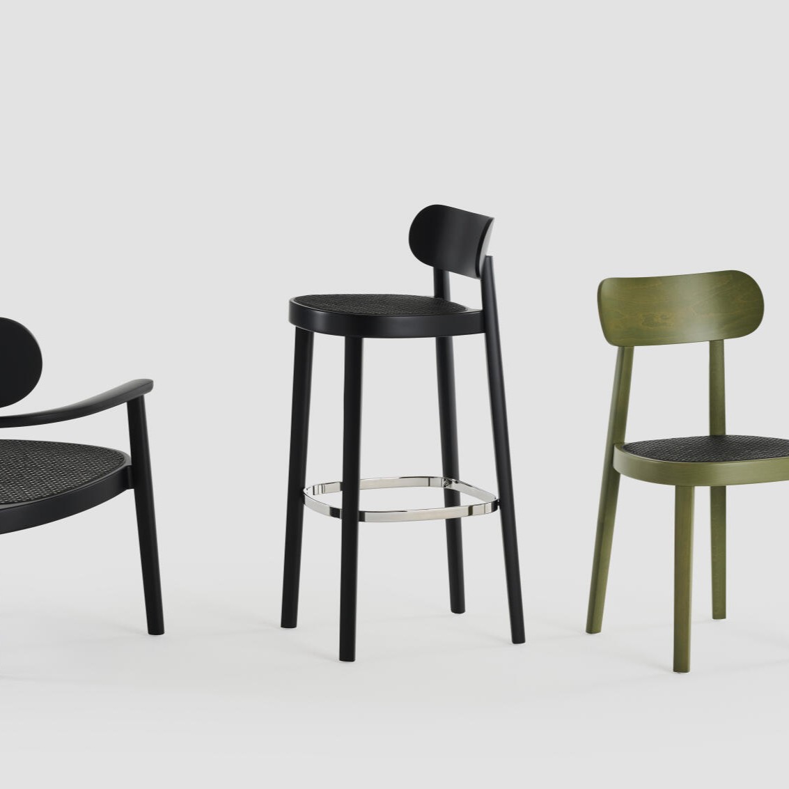 Die Sitzfläche und die Rückenlehne des Barhockers sind aus hochwertigem Buchenholz gefertigt, das in verschiedenen Farben erhältlich ist. Die mit Wiener Geflecht bezogene Sitzfläche bietet zusätzlichen Komfort und unterstützt eine entspannte Sitzhaltung. Ein besonderes Merkmal des Thonet 118 H ist die traditionelle Bugholztechnik, die für die Herstellung verwendet wird. Diese Technik verleiht dem Barhocker nicht nur seine charakteristische Form, sondern sorgt auch für eine außergewöhnliche Stabilität und Langlebigkeit.