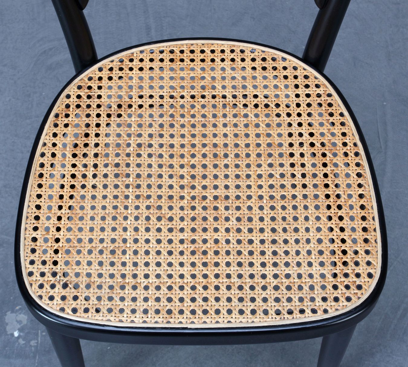 Die Stühle befinden sich in einem sehr guten gebrauchten Zustand. Das Wiener Geflecht hat über die Jahre eine schöne Patina bekommen und befindet sich in gutem Zustand. Vereinzelt können Streben rissig sein, die Sitzstabilität ist dadurch nicht beeinträchtigt. Die Lackierung wurde komplett erneuert und befindet sich dementsprechend in sehr gutem Zustand.