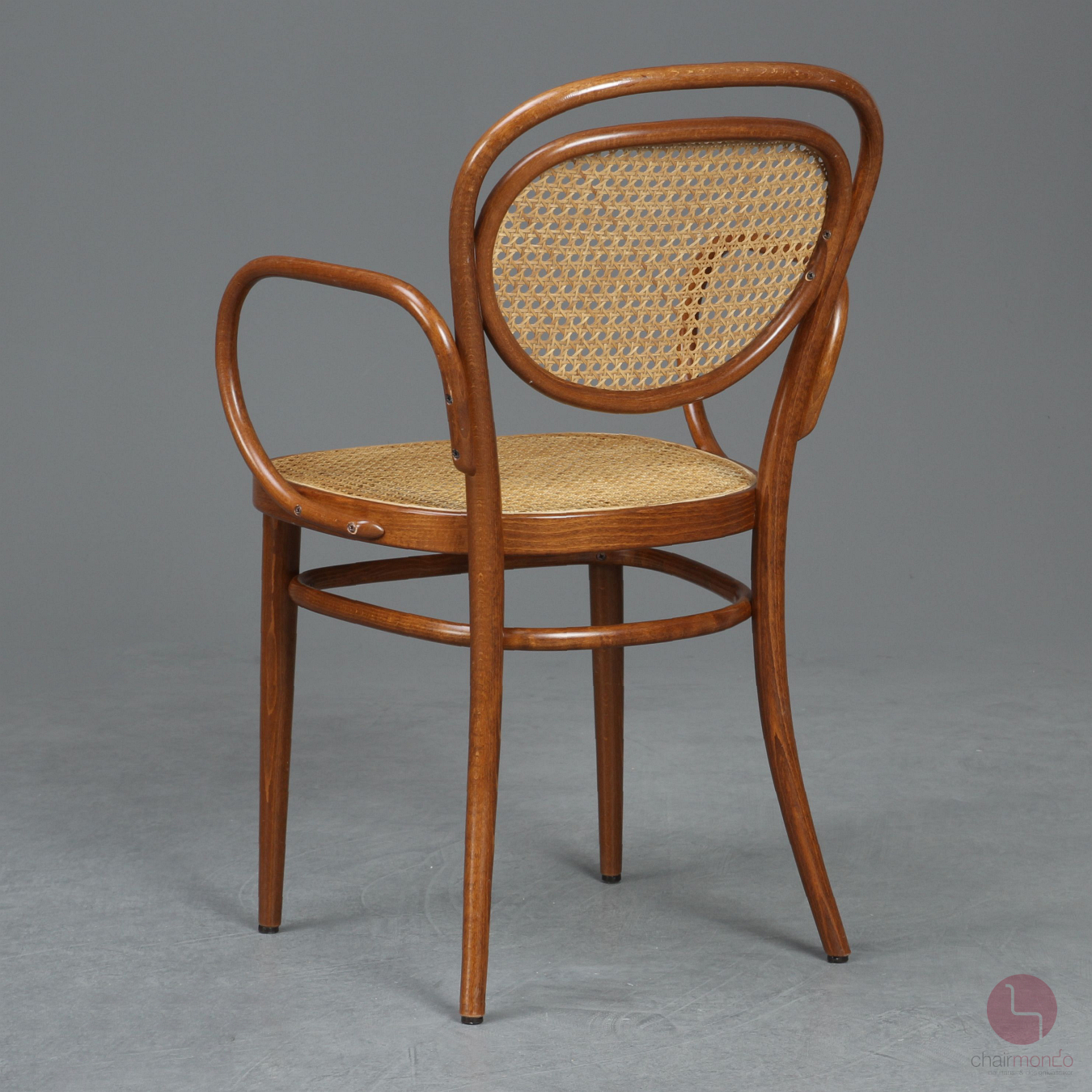 Bei uns erhalten Sie das Modell 215 RF in einer schönen Ausführung mit Wiener Geflecht und Nussbaum braun gebeiztem Buchenholz. Der Stuhl ist als Variante des 214er zusätzlich mit einer Rückenlehne und edel anmutenden Armlehnen ausgestattet, die den Stuhl sehr bequem machen.