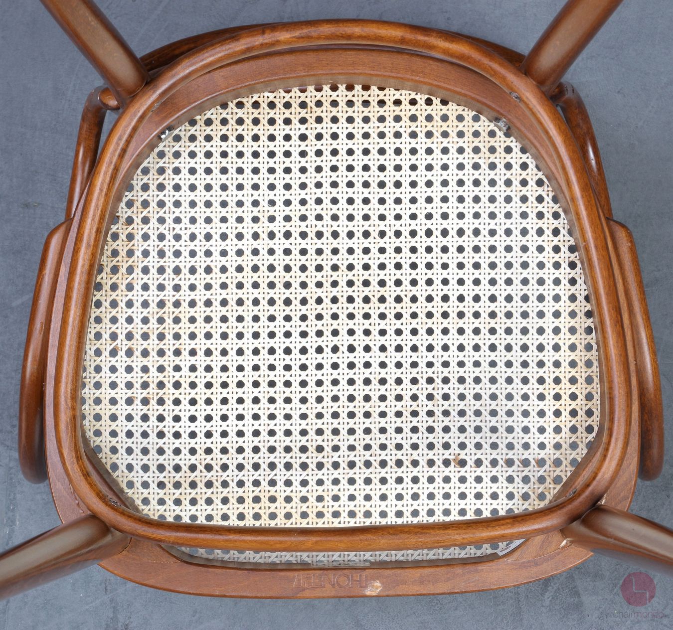 Auf der Unterseite ist das Thonet Logo mit dem Baujahr 1997 zu erkennen. Der Stuhl wird heute in der Variante mit Armlehnen nicht mehr produziert und daher immer seltener zu finden.