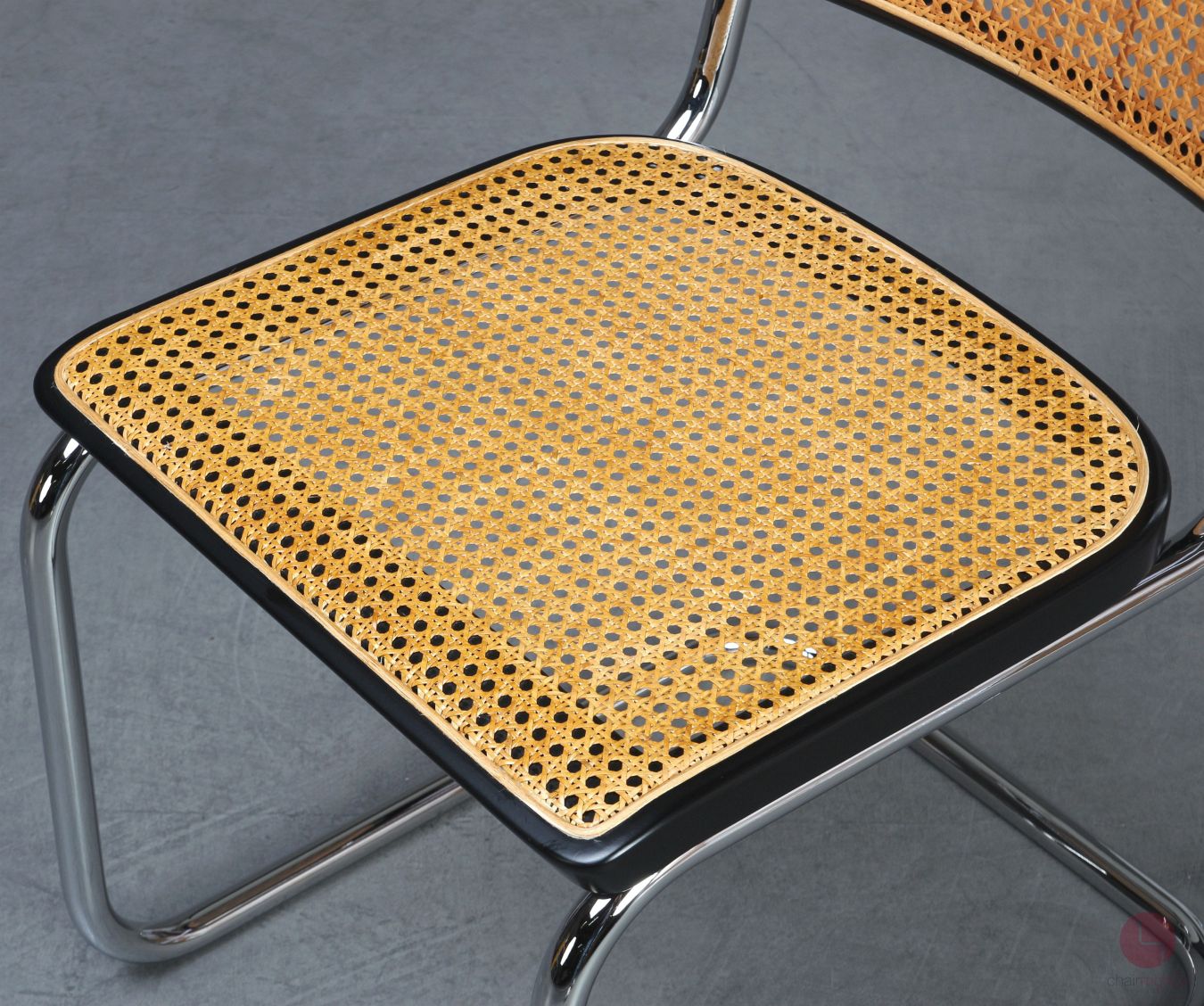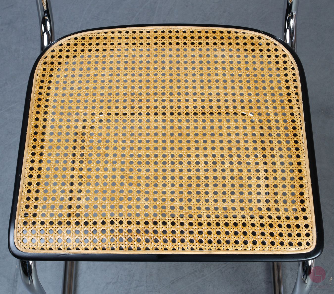 Bei uns erhalten Sie den Freischwinger Modell S32 in einer schönen Ausführung in Schwarz mit schöner Patina und erneuertem Stahlrohr Gestell.