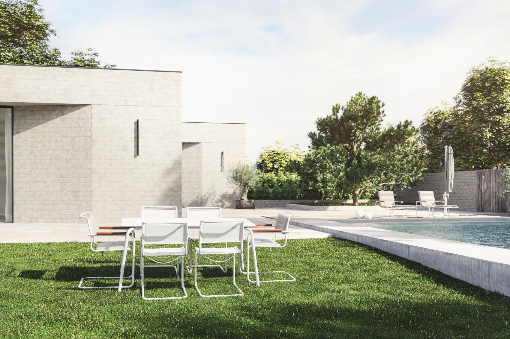 Der S 33 N All Seasons für den Outdoor-Bereich zeichnet sich durch seine kubische Form und klare Linienführung aus, die ihm eine schlichte, aber dennoch beeindruckende Ästhetik verleihen. Das stabile Stahlrohrgestell sorgt für eine federnde, leicht schwingende Bewegung, die höchsten Sitzkomfort bietet. Der Verzicht auf die hinteren Stuhlbeine verleiht dem Freischwinger seine charakteristische Leichtigkeit und Flexibilität. Ideal für den Außenbereich, fügt sich der Thonet S 33 N AS perfekt in Gärten, auf Terrassen oder auf Balkonen ein und hält auch extremen Witterungsbedingungen stand.