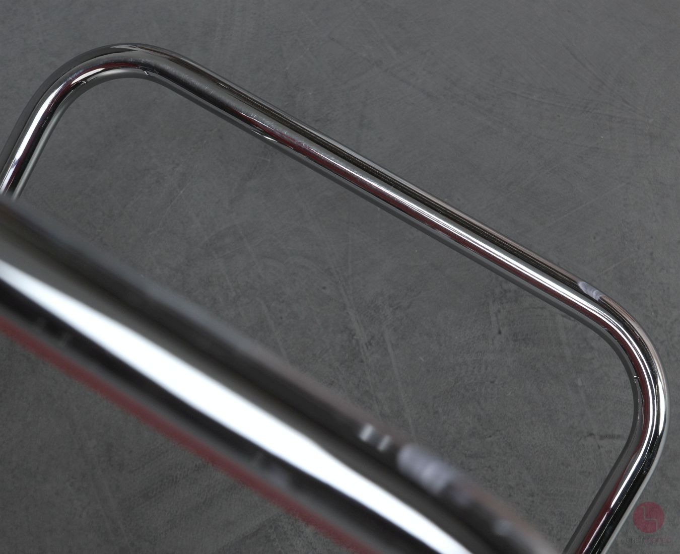 Die Stuhlgestelle stammen in etwa aus dem Herstellungsjahr um 1980. Mit den neuen Netzgarnituren machen die Stühle einen wunderschönen Gesamteindruck. Das Thonet Label befindet sich an der Rückenlehne. Die verchromten Stahlrohrgestelle befinden sich in sehr gutem Zustand und glänzen wunderbar. Auf Wunsch können vier schwarze oder transluzente Filzgleiter angebracht, die eine Benutzung auch auf empfindlichen Böden ermöglichen.