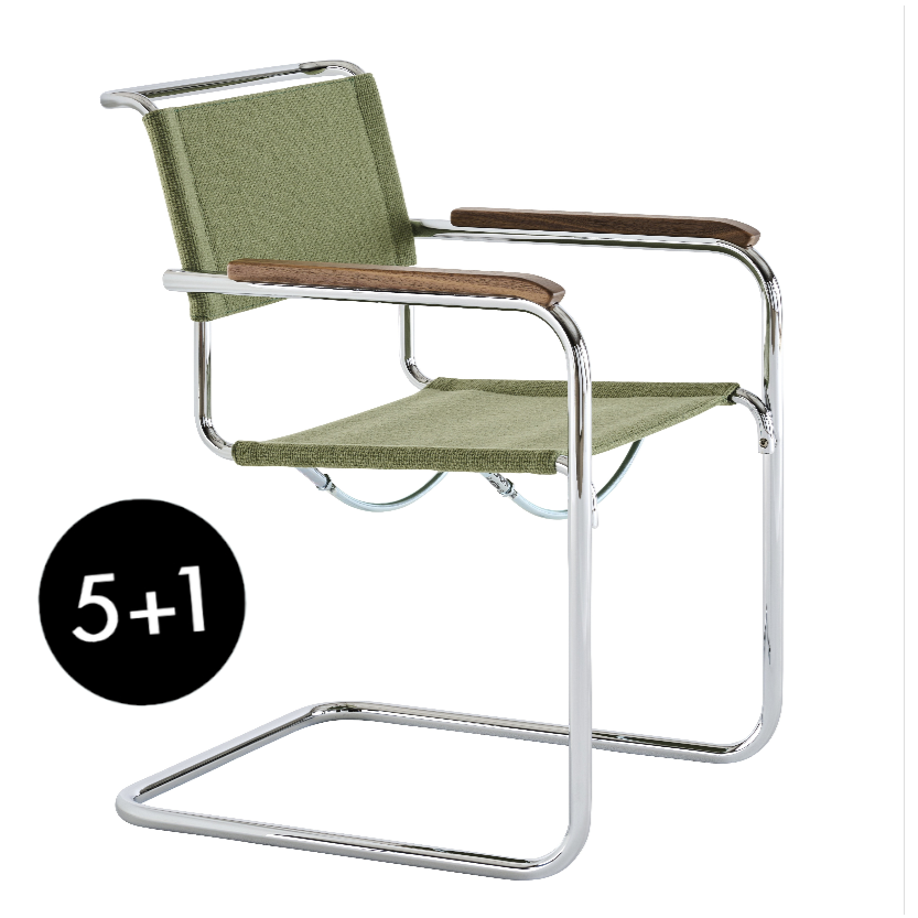 Thonet S34 V Freischwinger mit Nobel Stoff und Armlehnen l 5+1 Aktion