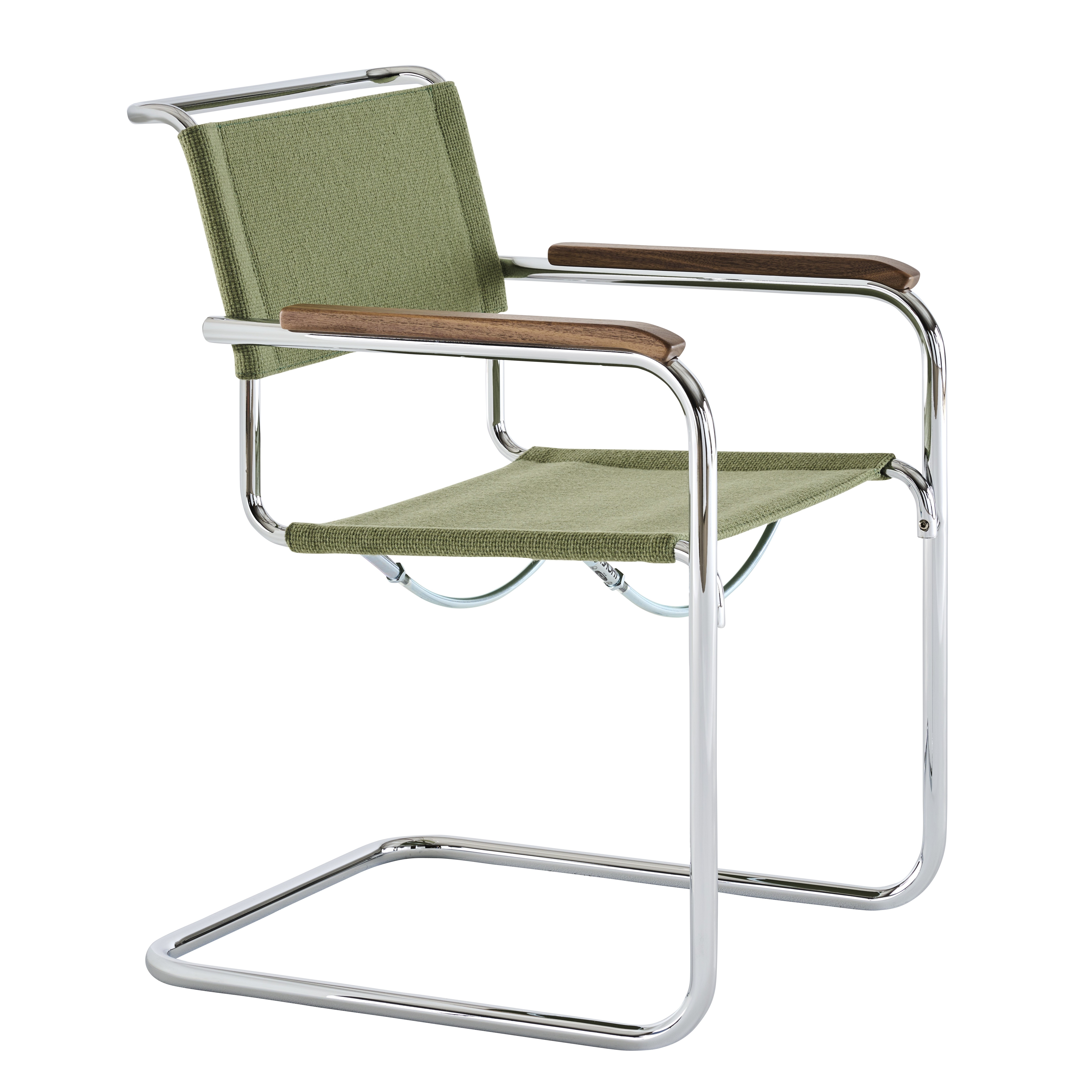 Thonet S34 V Freischwinger mit Nobel Stoff und Armlehnen