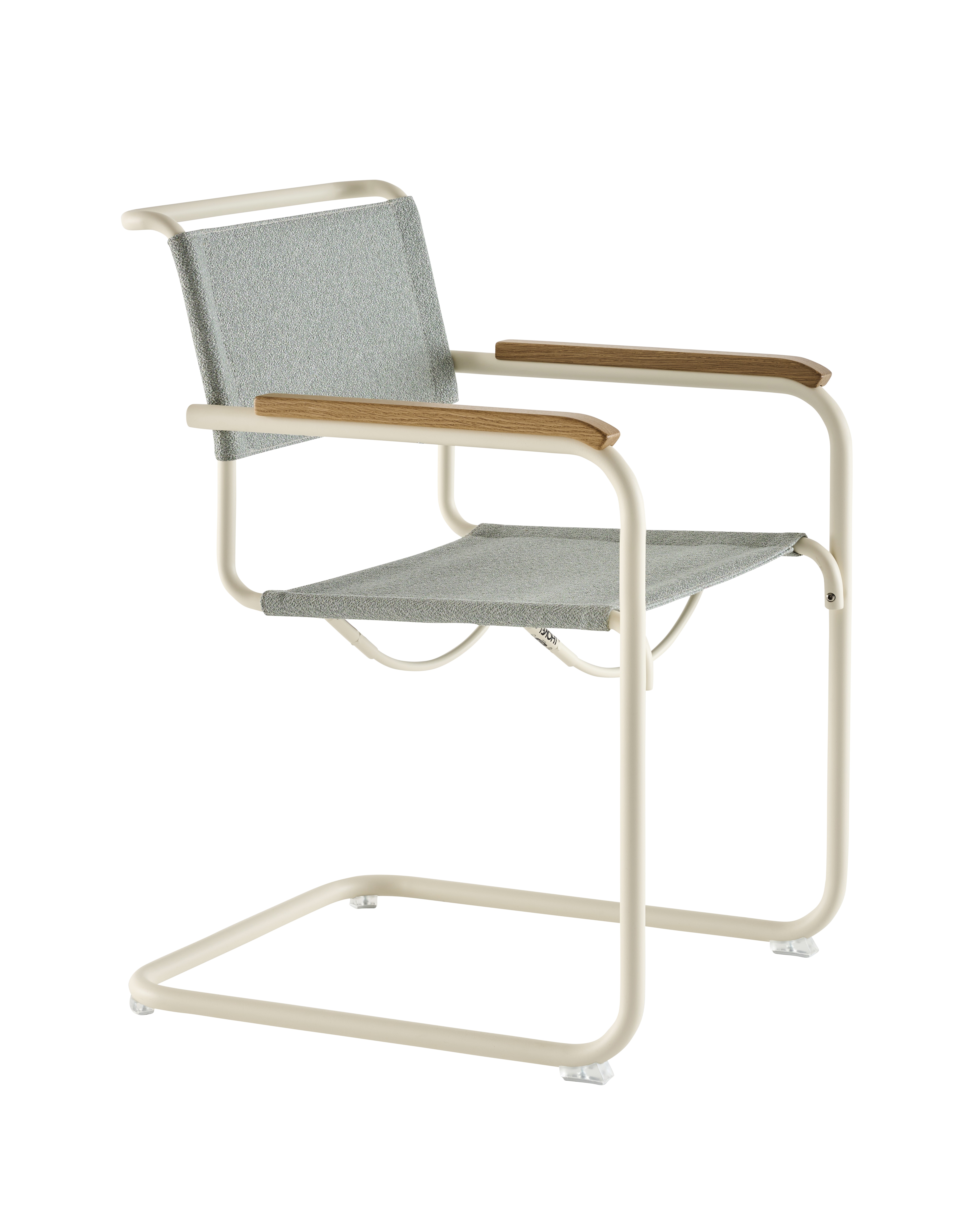 Thonet S34 V Freischwinger mit Cento Stoff und Armlehnen