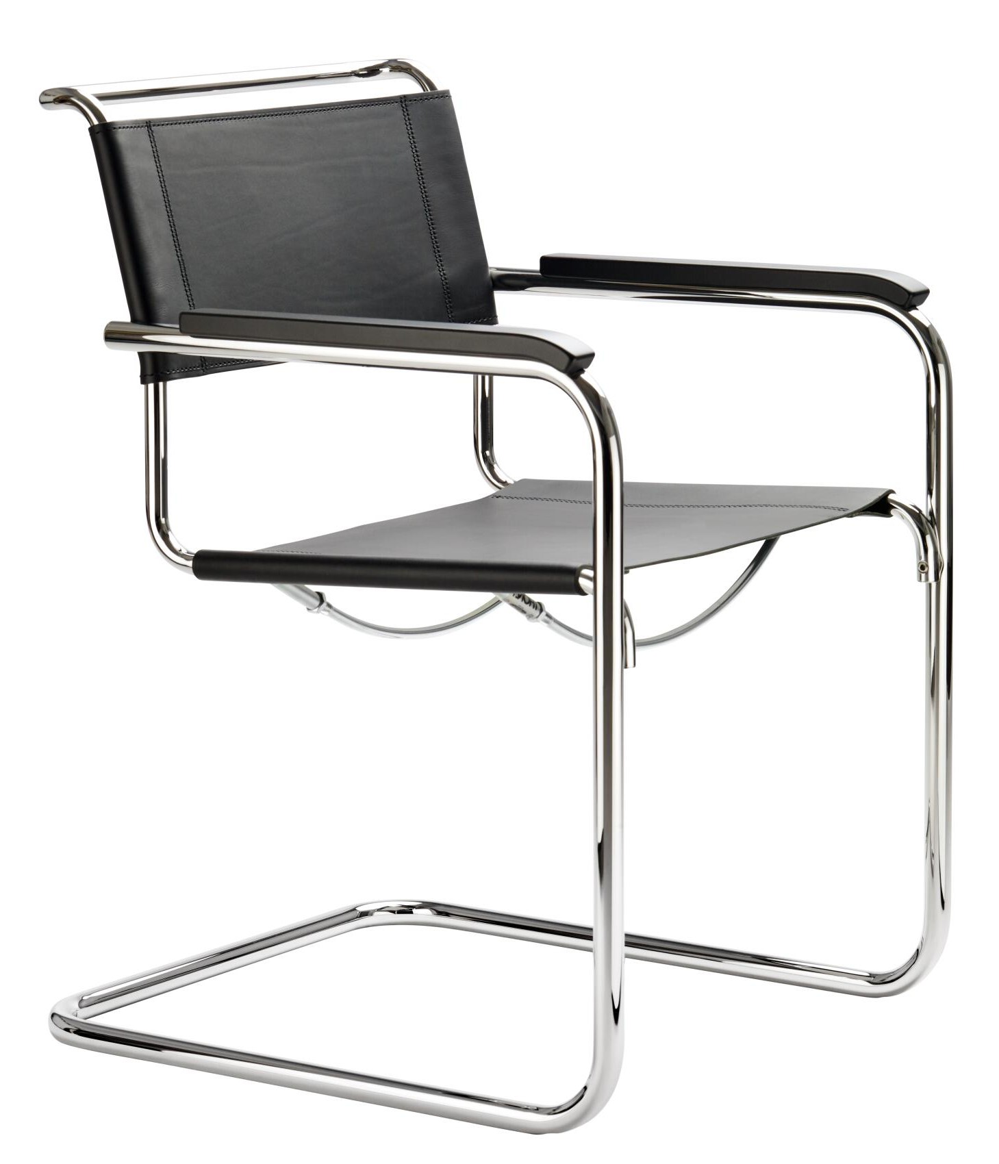 Thonet S34 Freischwinger mit Kernleder und Armlehnen