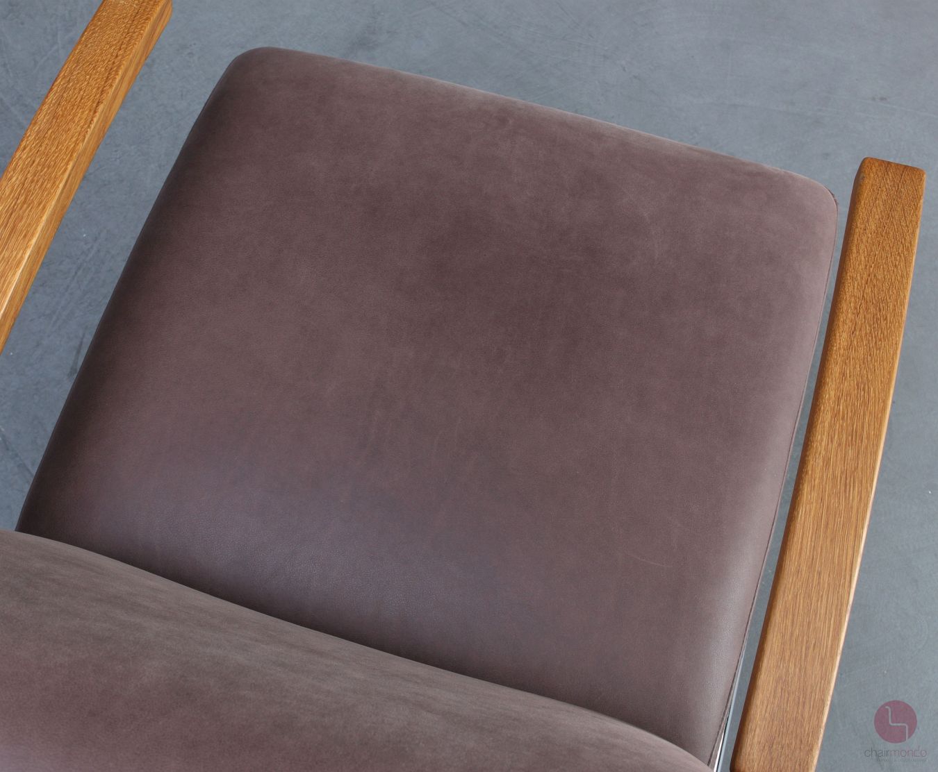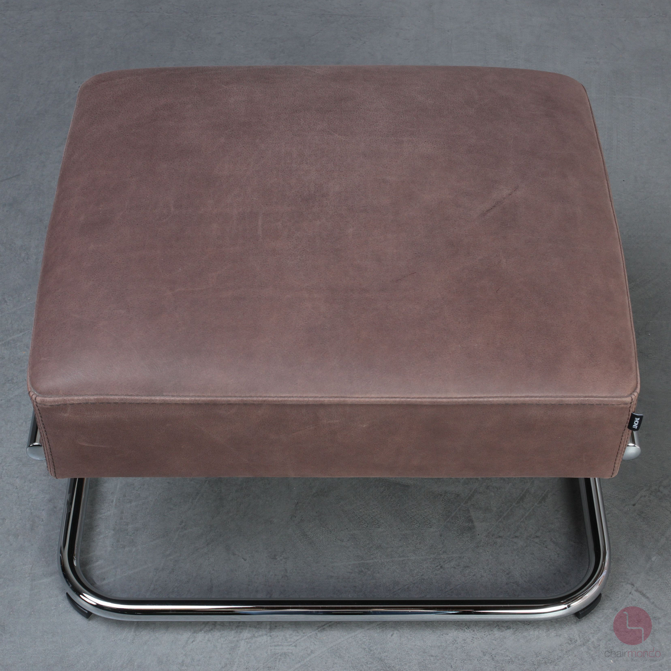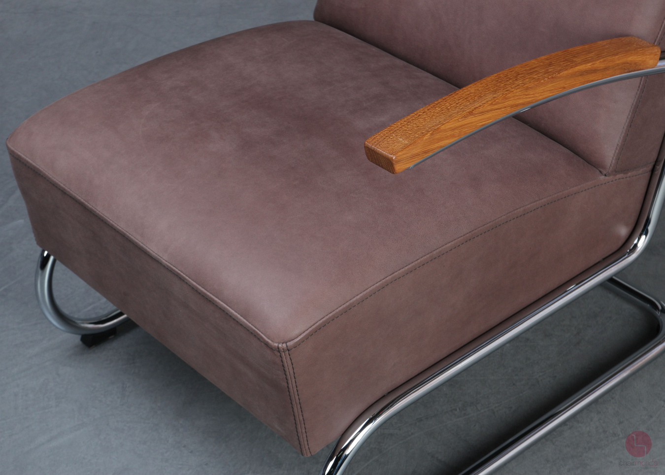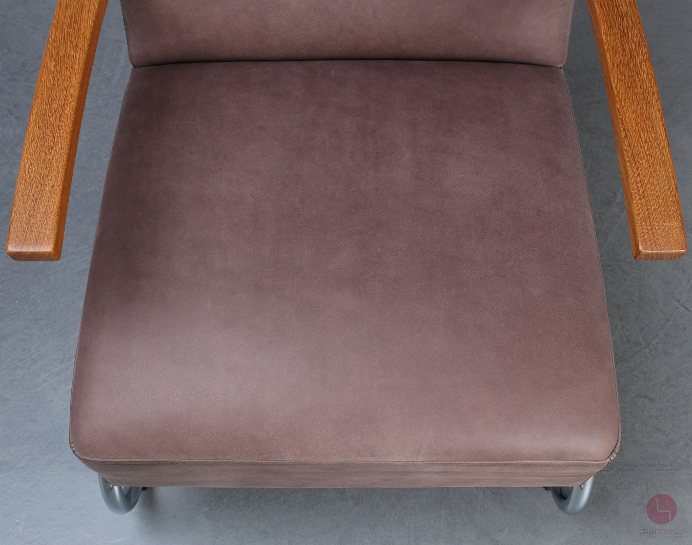 Bei uns erhalten Sie den bequemen Freischwinger Sessel in einer sehr hochwertigen Ausführung mit vollnarbigem Nubukleder in Dunkelbraun, Eiche Armlehnen und dem zugehörigen Fußhocker.