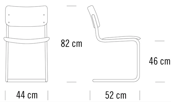 Der Freischwinger S 43 zeichnet sich durch klare Linien und verbesserten Sitzkomfort aus. Mart Stam erreichte größtmögliche Reduktion, indem er das Stahlrohr-Gestell mit Formholzteilen für Sitz und Rücken kombinierte. Diese zurückhaltende Form macht den S 43 zu einem exemplarischen Entwurf im Geiste der Moderne.
