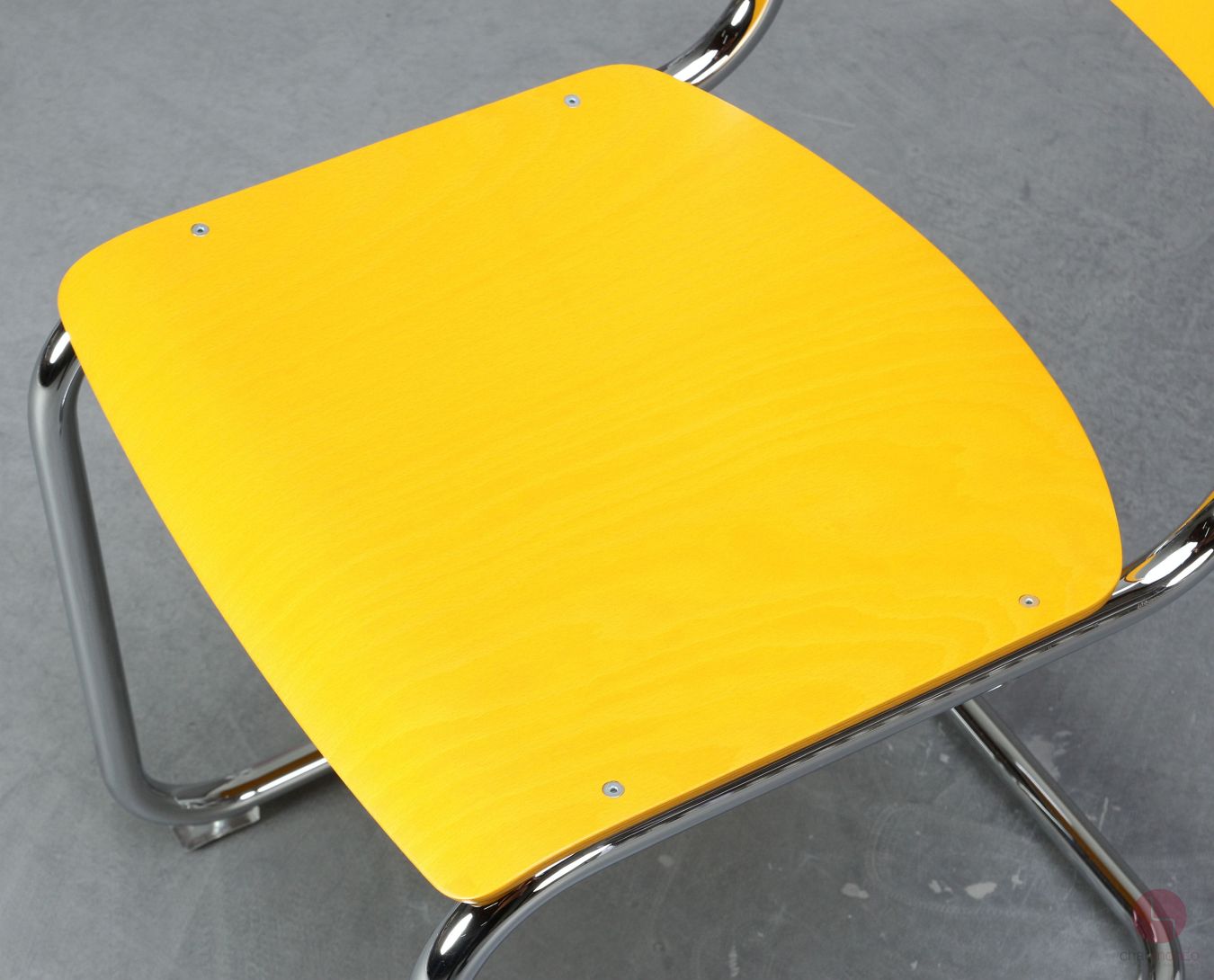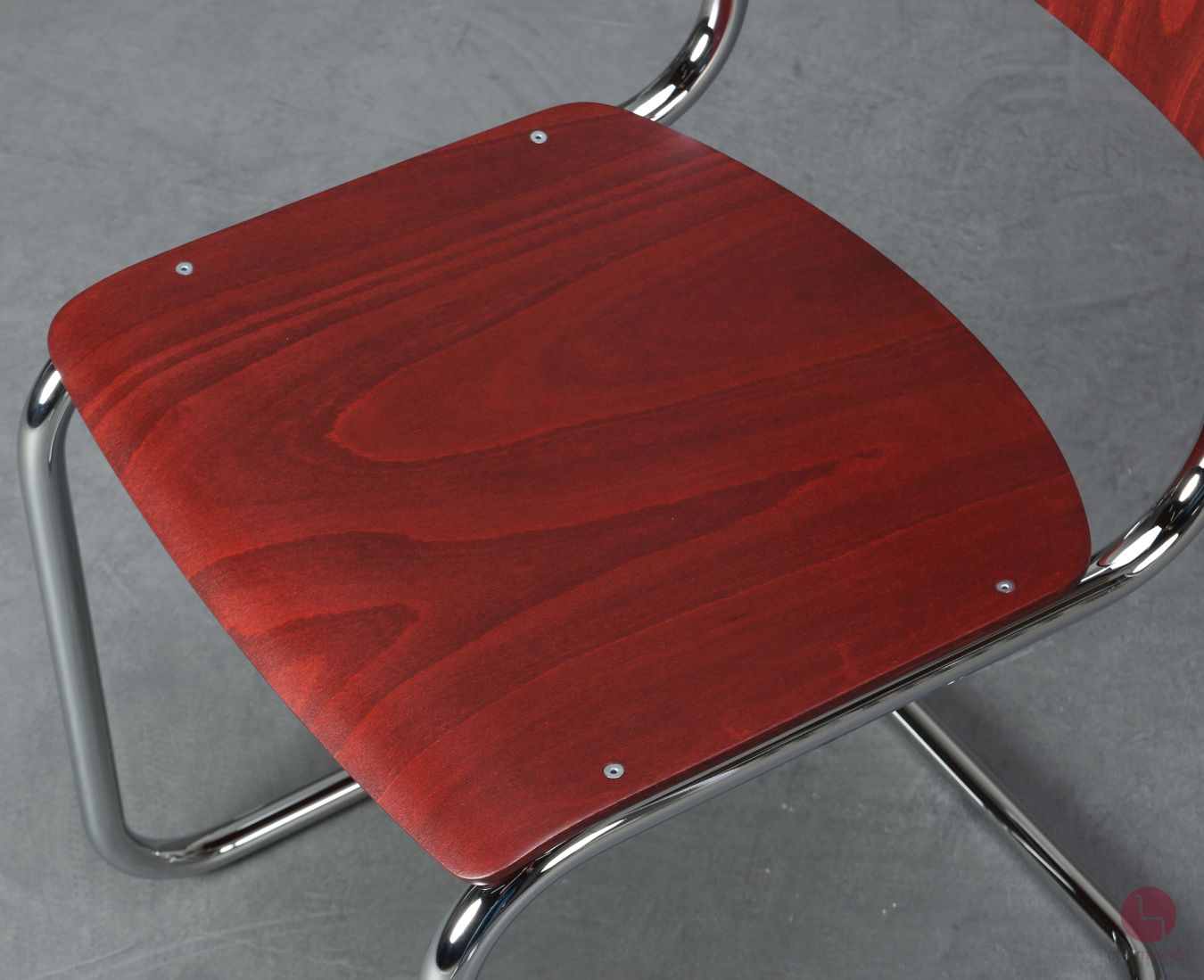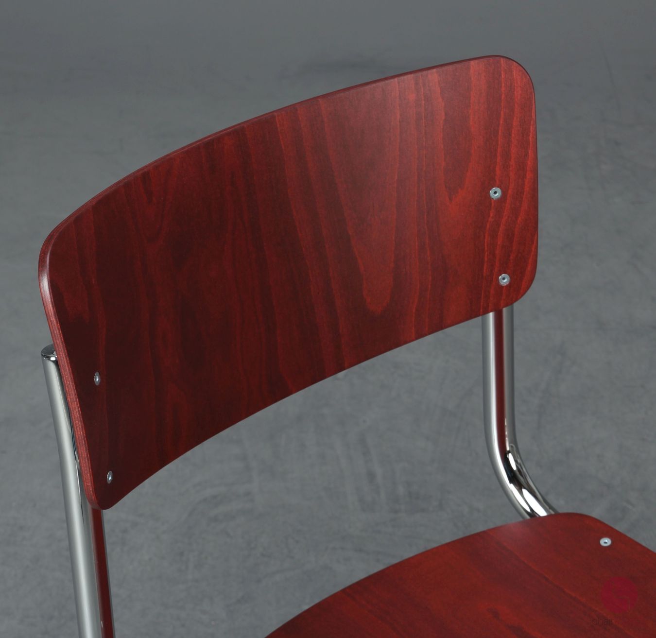 Der Freischwinger S 43 zeichnet sich durch klare Linien und verbesserten Sitzkomfort aus. Mart Stam erreichte größtmögliche Reduktion, indem er das Stahlrohr-Gestell mit Formholzteilen für Sitz und Rücken kombinierte. Diese zurückhaltende Form macht den S 43 zu einem exemplarischen Entwurf im Geiste der Moderne.
