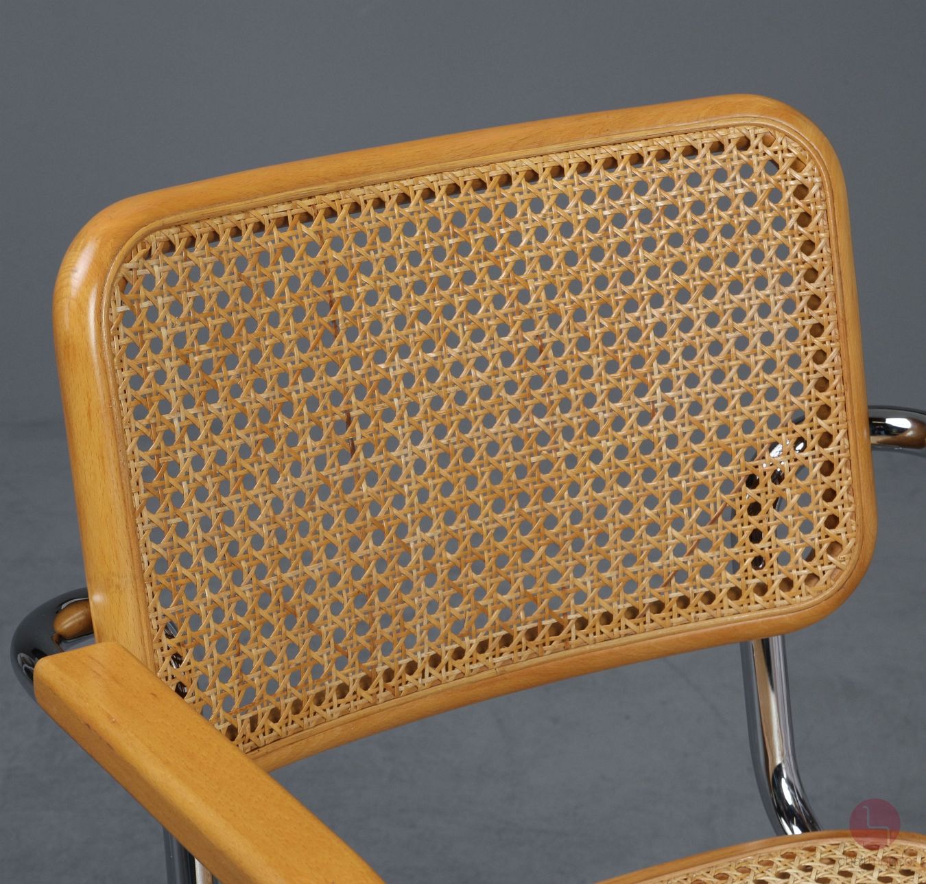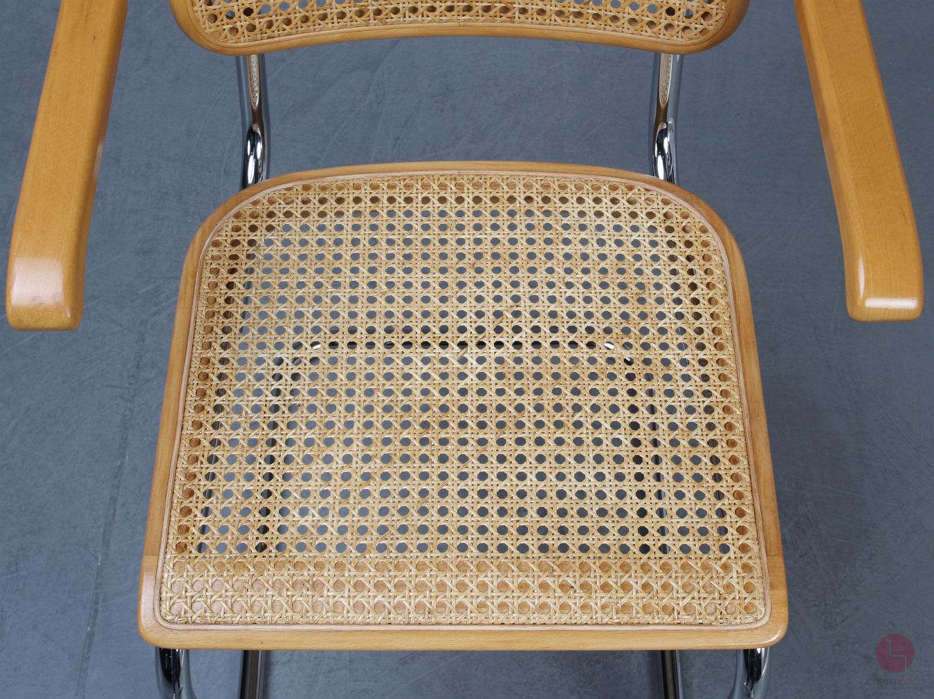 Bei diesem Freischwinger handelt es sich um den wohl bekanntesten und am meisten produzierten Klassiker von Thonet. Das wichtigste Merkmal ist die ausgereifte Konstuktion und die geniale Verbindung von Stahlrohr und Materialien, wie Holz, Leder oder Rohrgeflecht. Der Entwurf wurde von Marcel Breuer in den Jahren 1928 - 1931 erschaffen. Er machte sich nach seiner Zeit am Bauhaus als Architekt und Innenarchitket in Berlin selbstständig und realisierte großartige Möbel. Thonet produziert diesen Stuhl seit 1930. Durch seine ästhetische Reduktion passt er in vielerlei Lebensbereiche: Wohnungen, Konferezen, Restaurants oder Wartezonen.