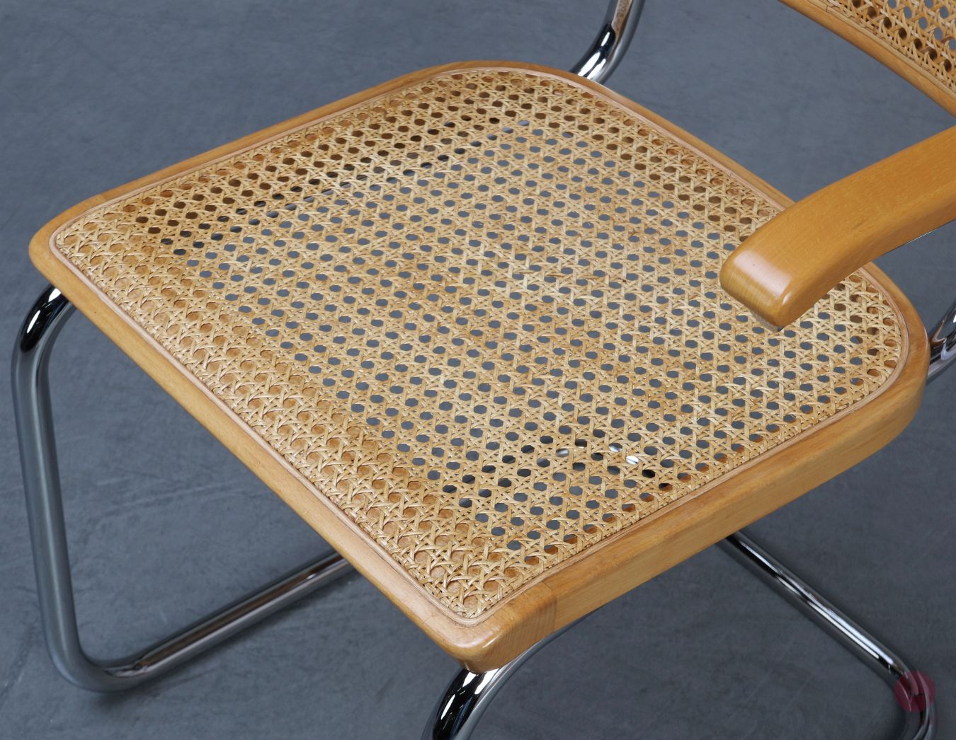 Bei uns erhalten Sie den Freischwinger Modell S64 in einer sehr schönen Variante in Buche Natur mit erneuertem Sitzgeflecht und schöner Patinierung aus den 1980er Jahren!