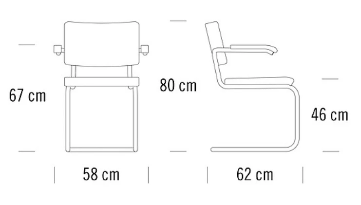 Bei uns erhalten Sie den bekannten Thonet Klassiker in einer Pure Materials Version mit naturbelassenem Nappaleder oder Nubukleder in verschiedenen Farben. Bei den Armlehnen haben Sie die Wahl zwischen Eiche-, Esche- oder Nussbaumholz, bzw. Buche schwarz gebeizt.