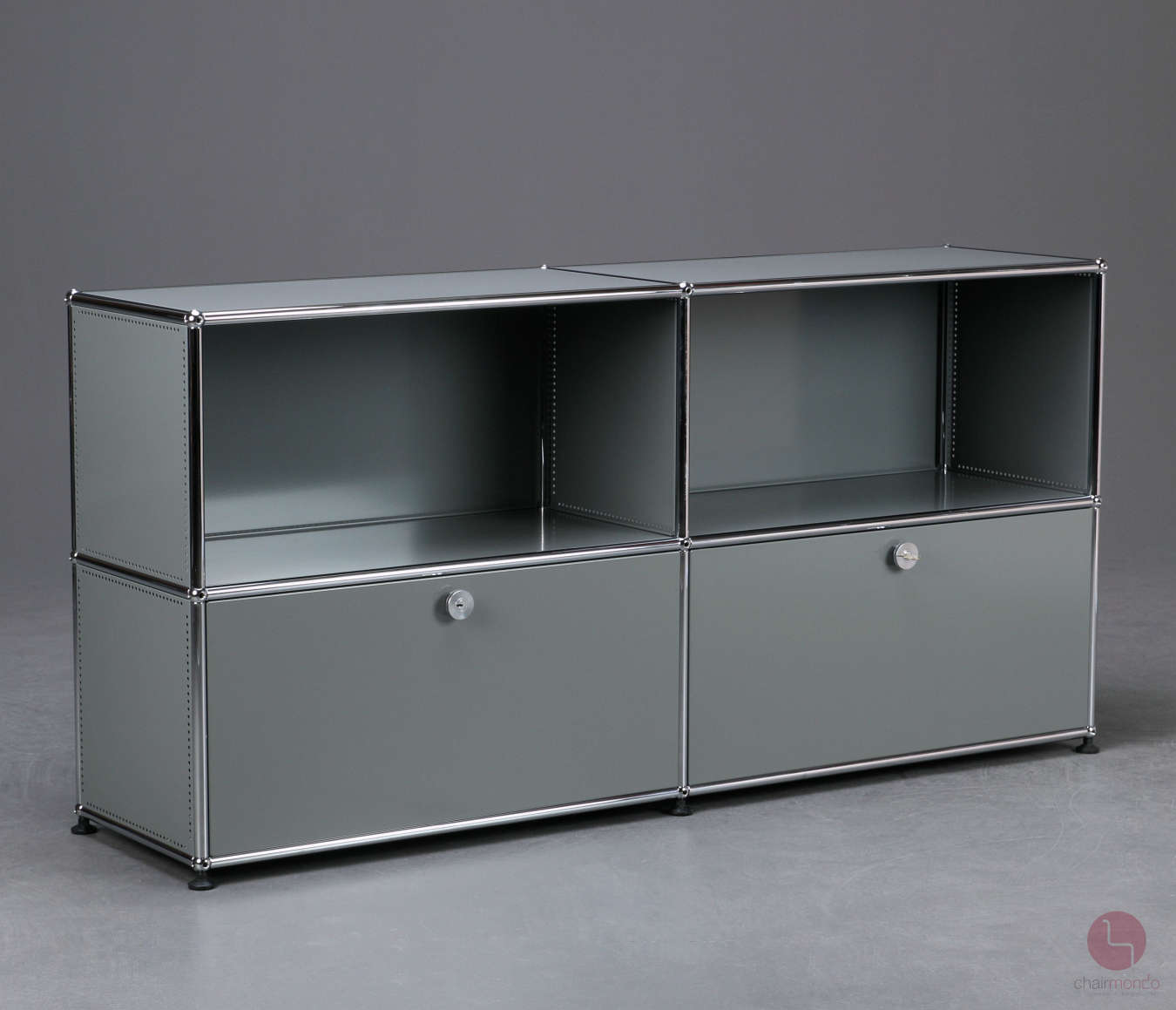 Startseite » Hersteller » USM Haller » USM Haller Kommode Sideboard Mittelgrau mit vier Fächern + zwei Klapptüren gebraucht