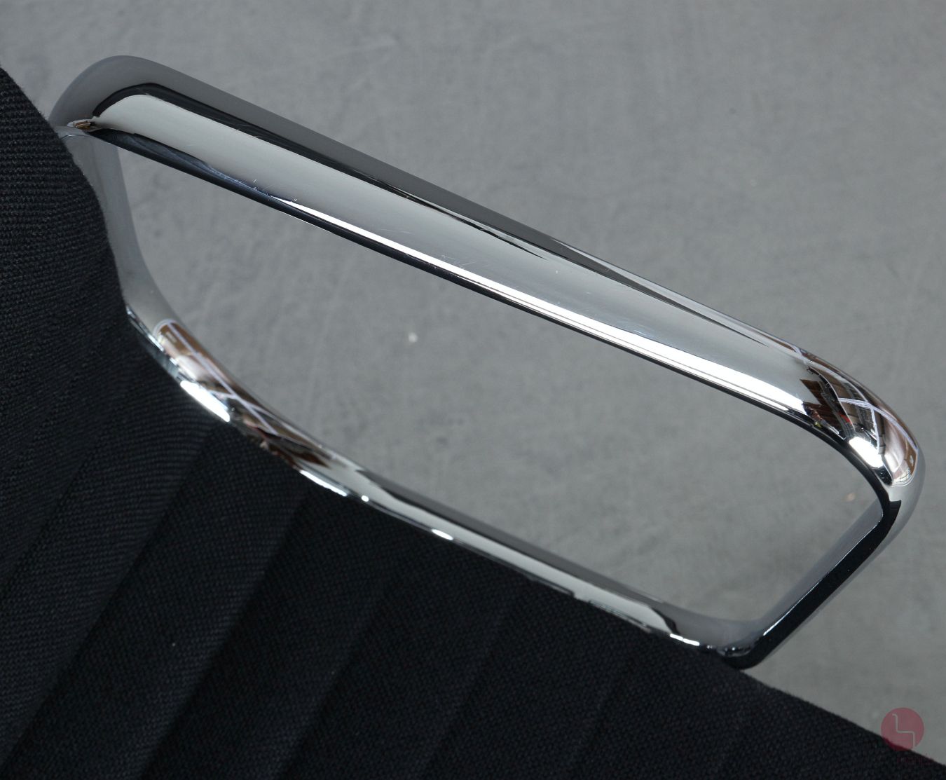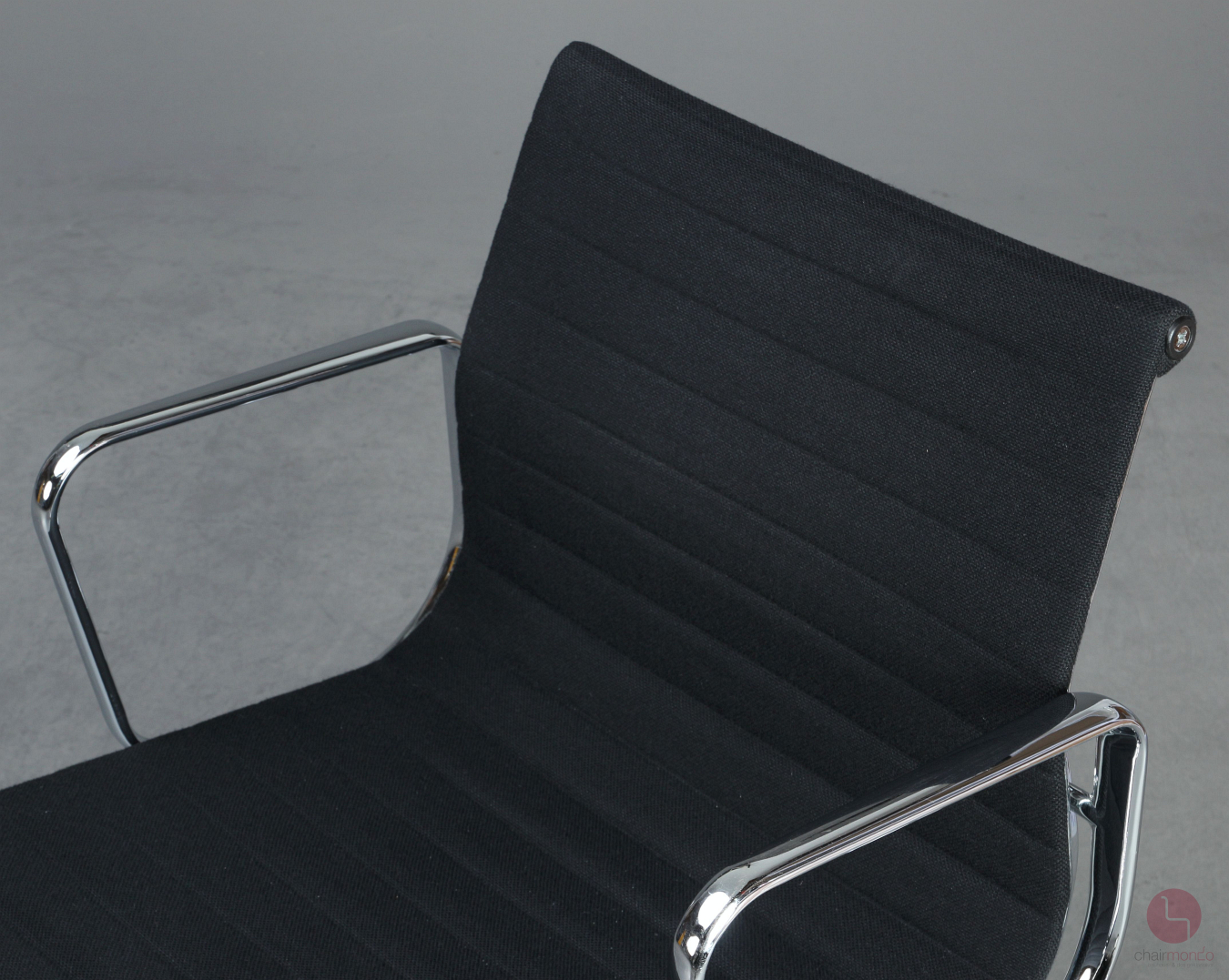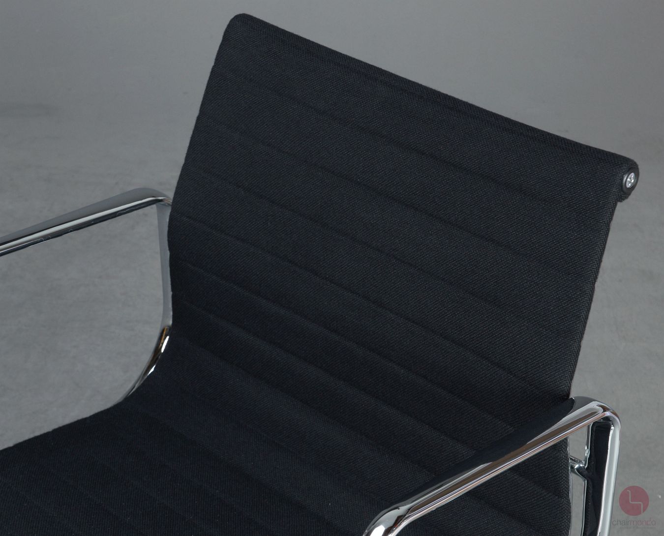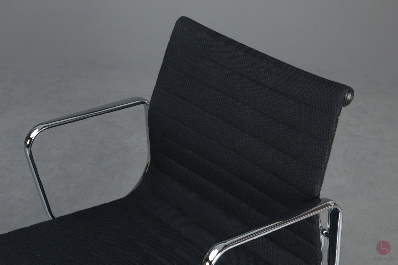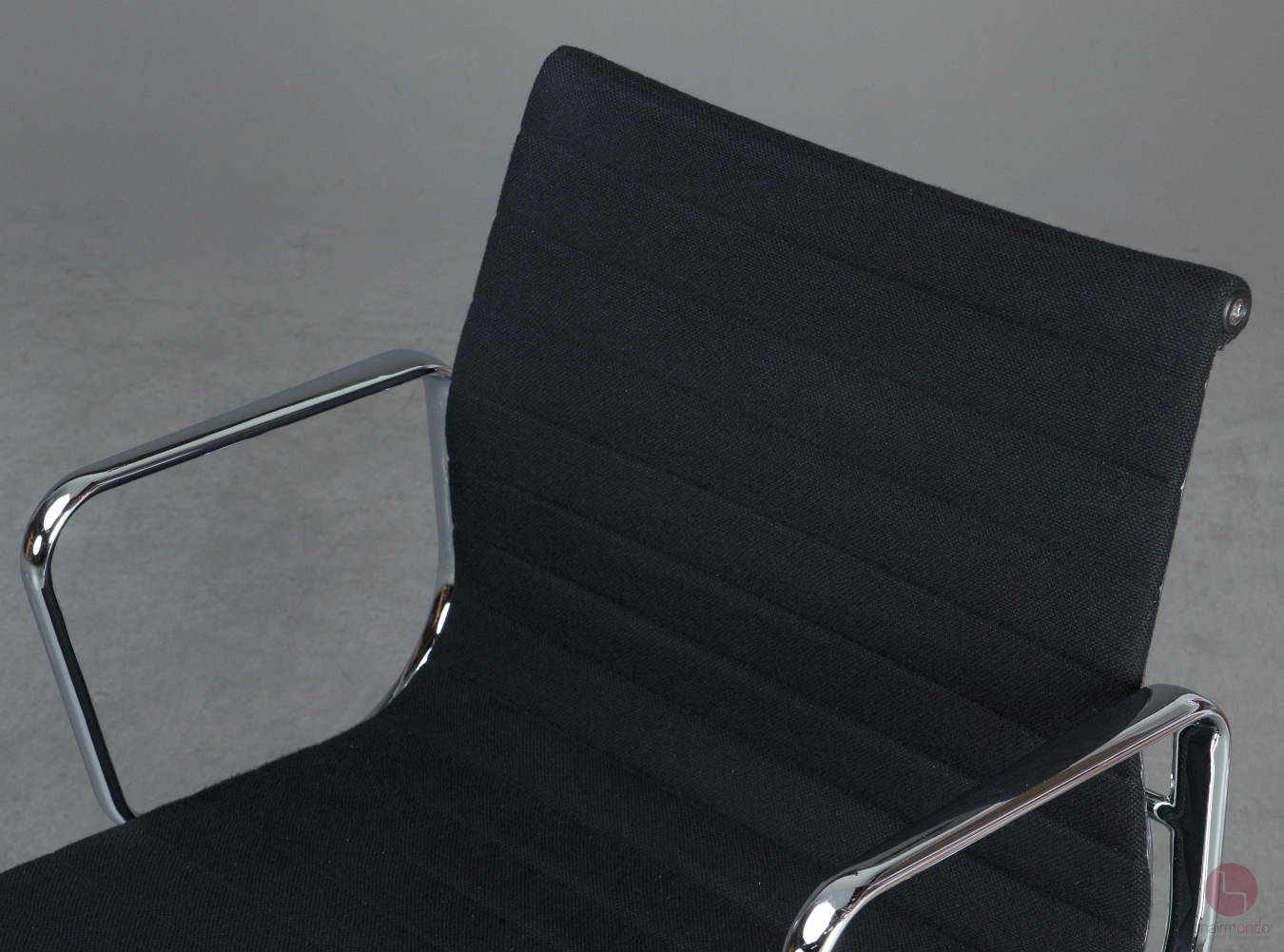 Bei uns erhalten Sie den Designklassiker in der Ausfühurng mit schwarzem Hopsak Bezug, Gestell und Armlehnen sind aus verchromtem Aluminium.
