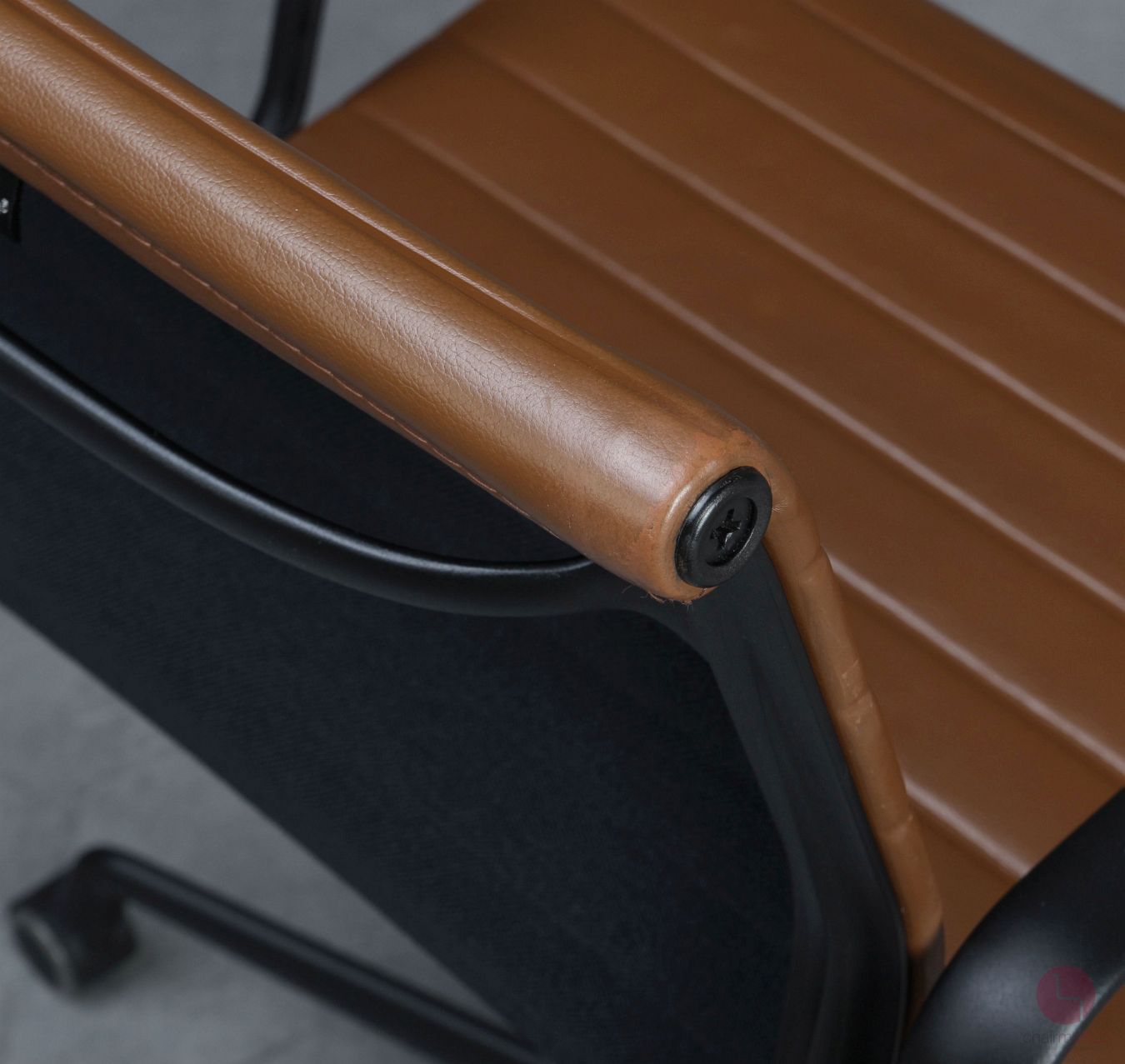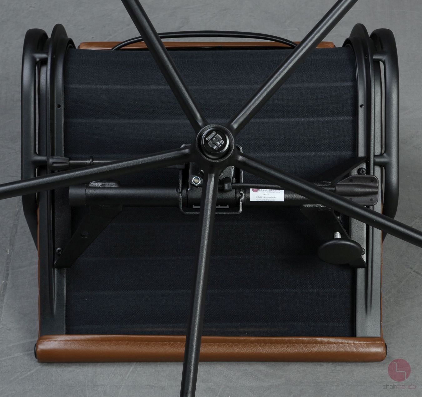 Bei uns erhalten Sie den Designklassiker in einer sehr schönen Ausführung mit braunem Echtlederbezug und schwarz beschichtetem Gestell.