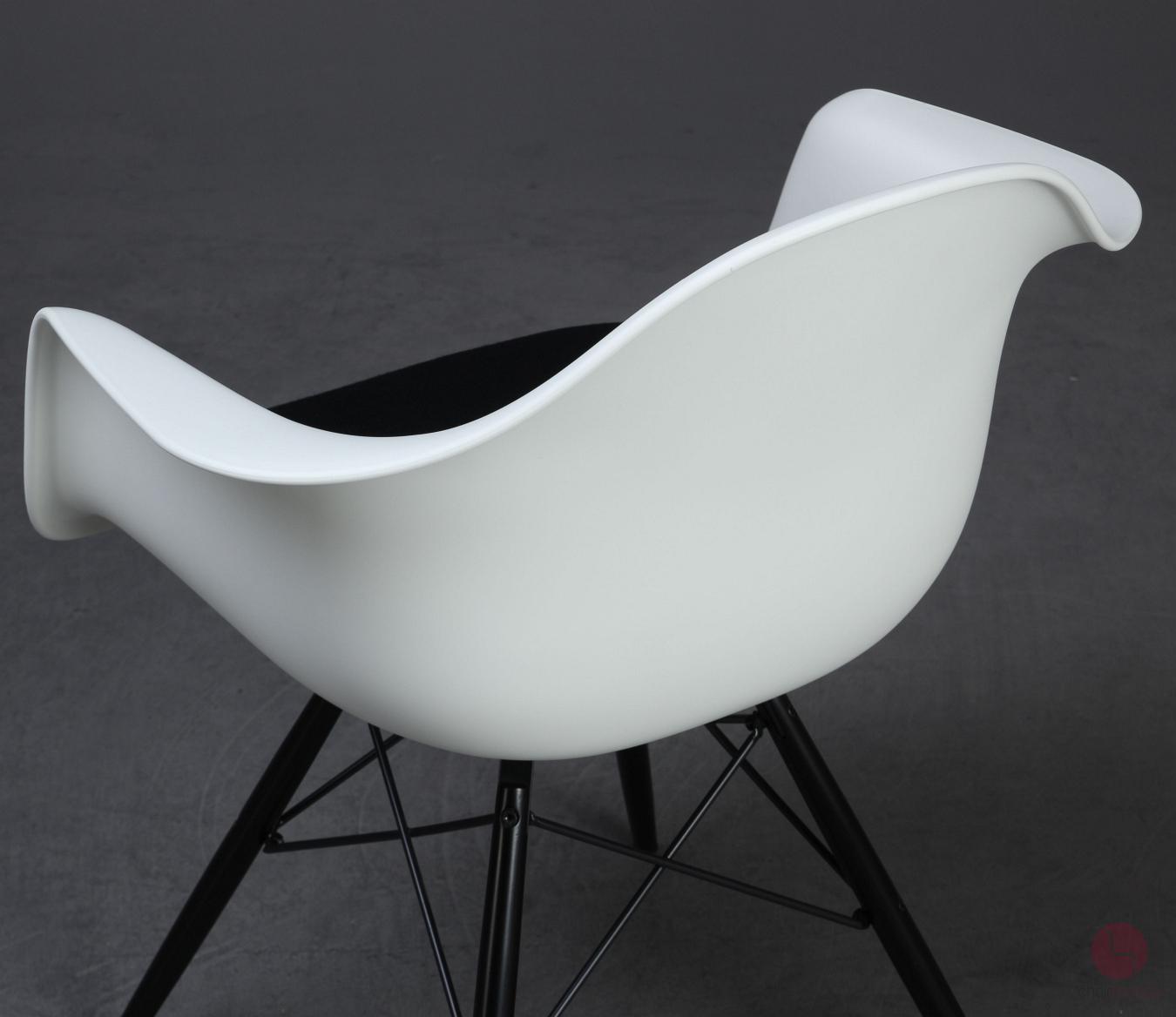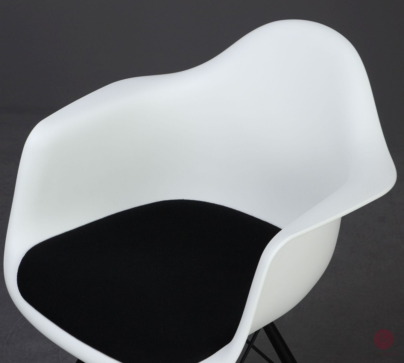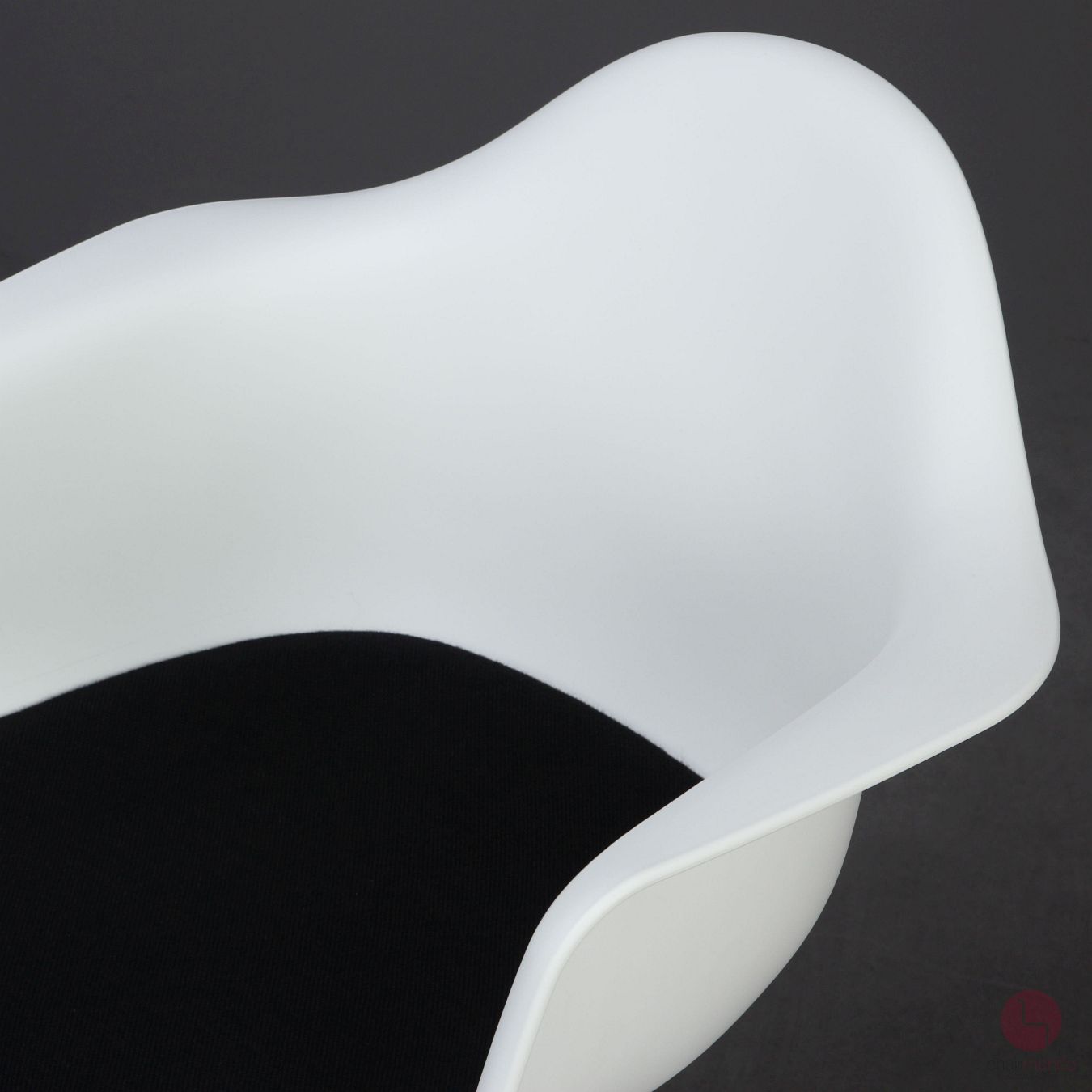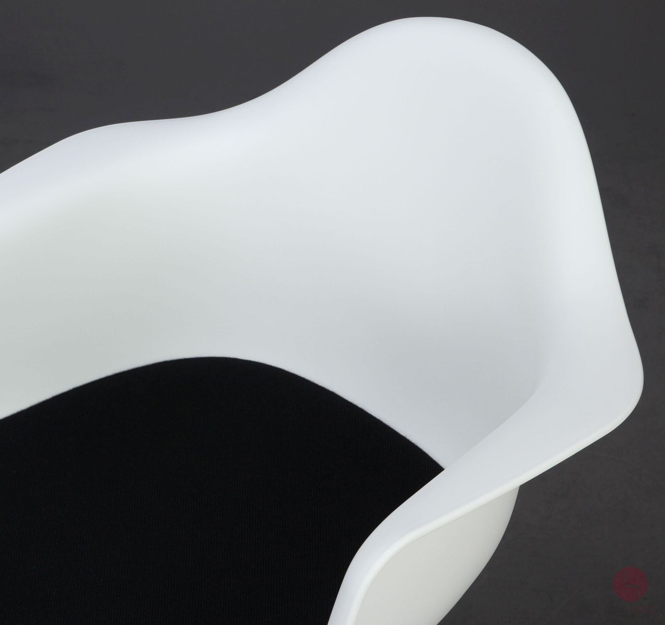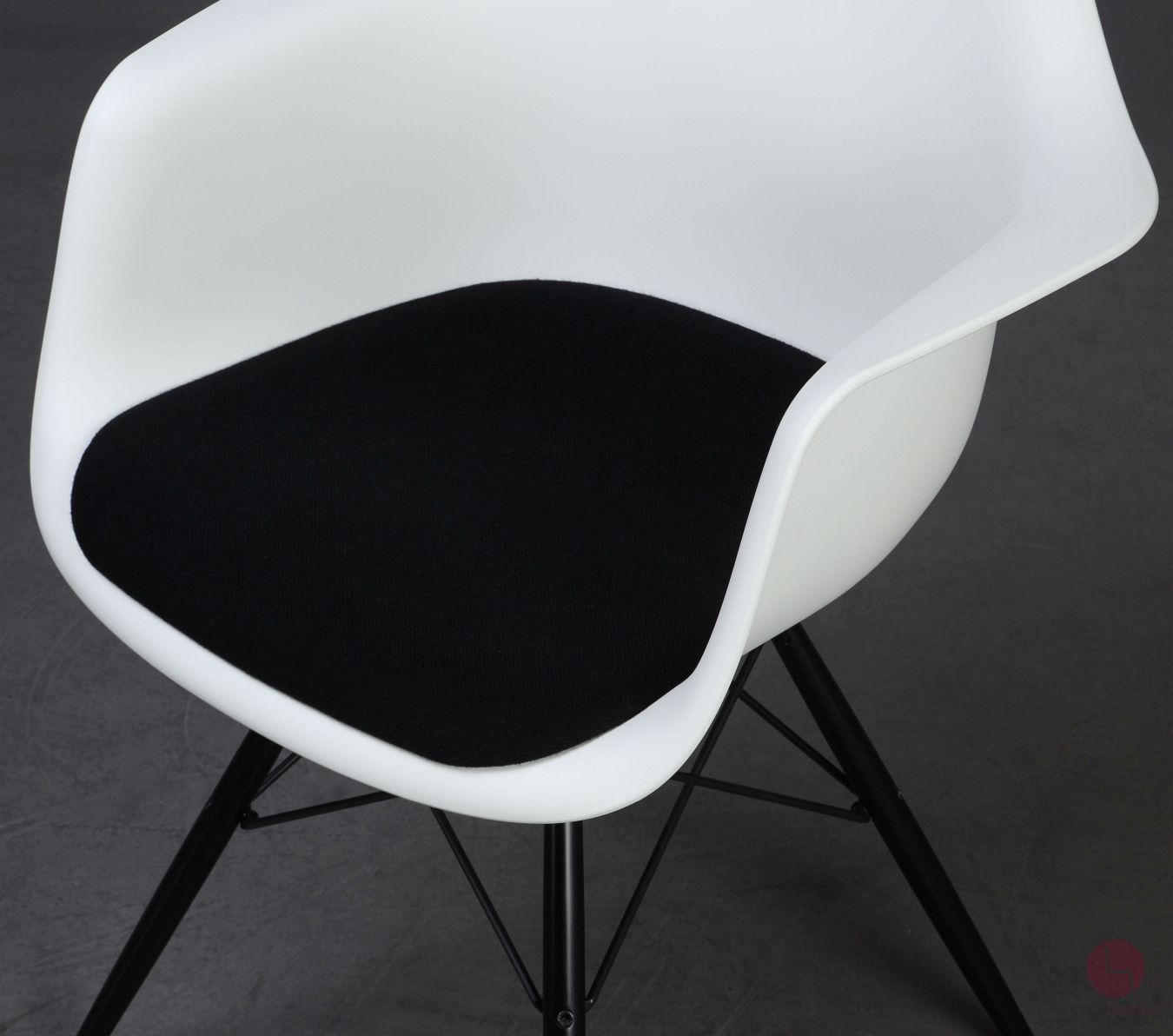Startseite » Stühle » Vitra Designklassiker » Vitra Plastic Armchair DAW in Weiß mit schwarzem Polster gebraucht