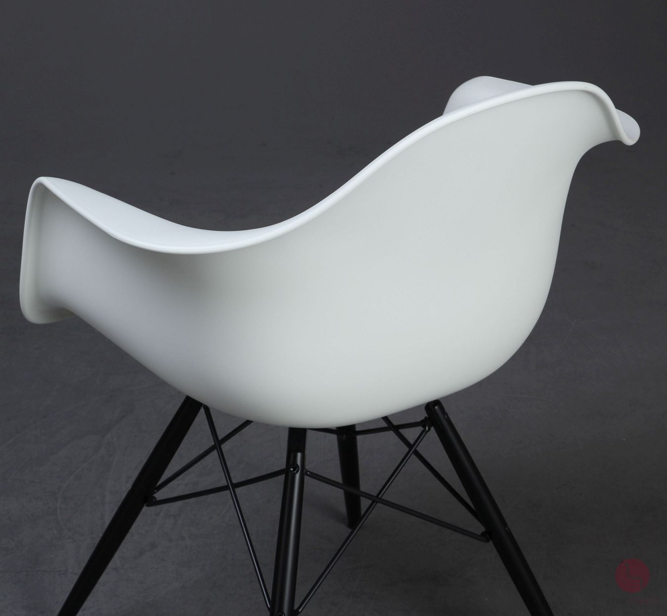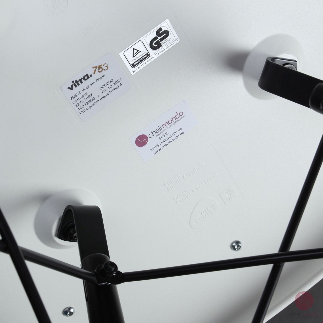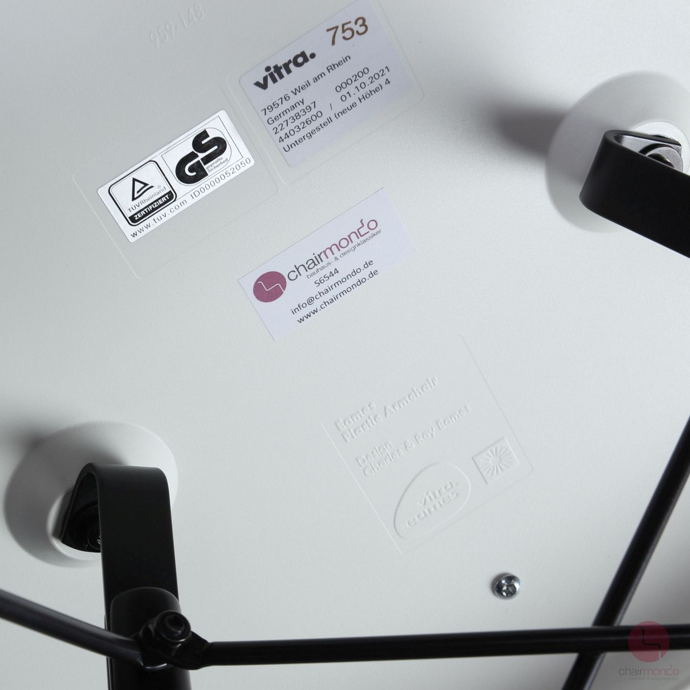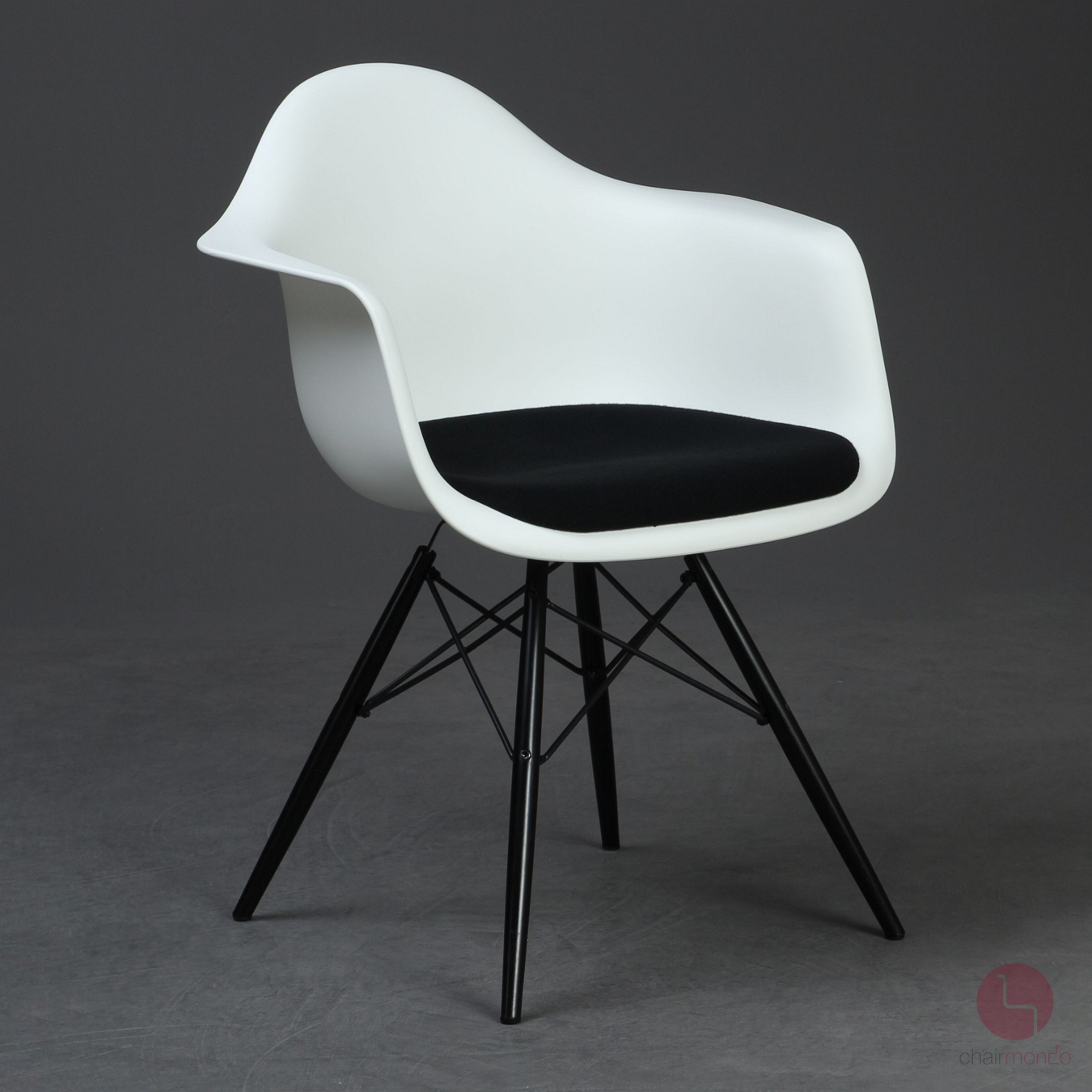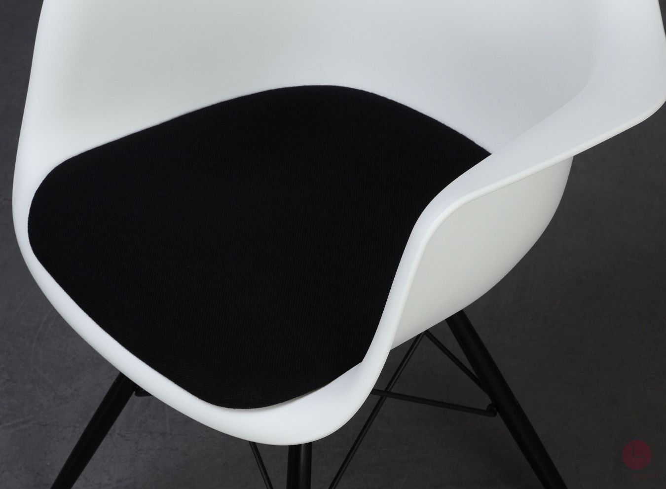 Startseite » Stühle » Vitra Designklassiker » Vitra Plastic Armchair DAW in Weiß mit schwarzem Polster gebraucht