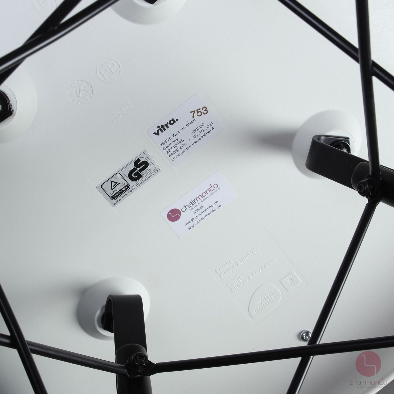 Die Stühle befinden sich in einem sehr guten, nahezu neuwertigen Zustand. Es bestehen so gut wie keine Gebrauchsspuren. Die Stühle stammen aus dem Herstellungsjahr 2021 und wurden sehr pfleglich behandelt. Auf der Unterseite sind noch alle original Vitra Aufkleber zu finden (siehe Fotos). Die Holzuntergestelle aus Ahorn sind in sehr gutem Zustand und bieten einen schönen Kontrast zu den weißen Sitzschalen.