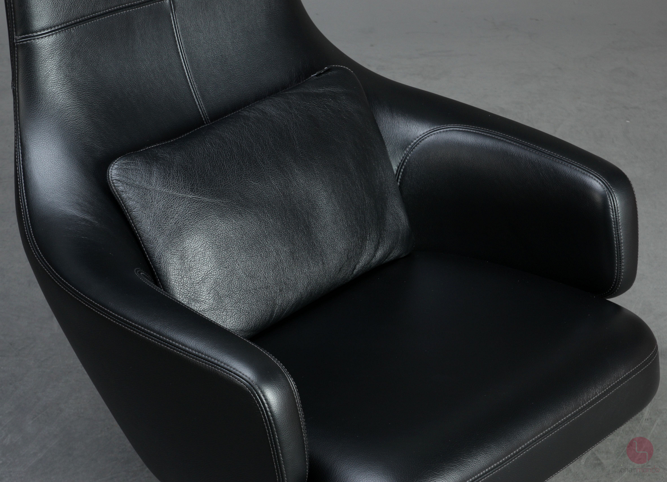 Bei uns erhalten Sie den Vitra Repos Sessel in einer sehr schönen und hochwertigen Premium Leder Ausführung in Schwarz mit passender Panchina Fußbank und Lederkissen.