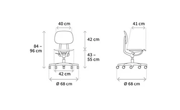 Sitz- und Rückenfläche bestehen aus einem hochwertigen, filigranen Kunststoff, hier in Schwarz. Beide Flächen sind zusätzlich mit einem farblich passenden Stoffüberzug ausgestattet, der den Sitzkomfort erhöht und das Design harmonisch abrundet. Das ergonomische Design ermöglicht hohen Komfort – ganz ohne manuellen Einstellungsaufwand.